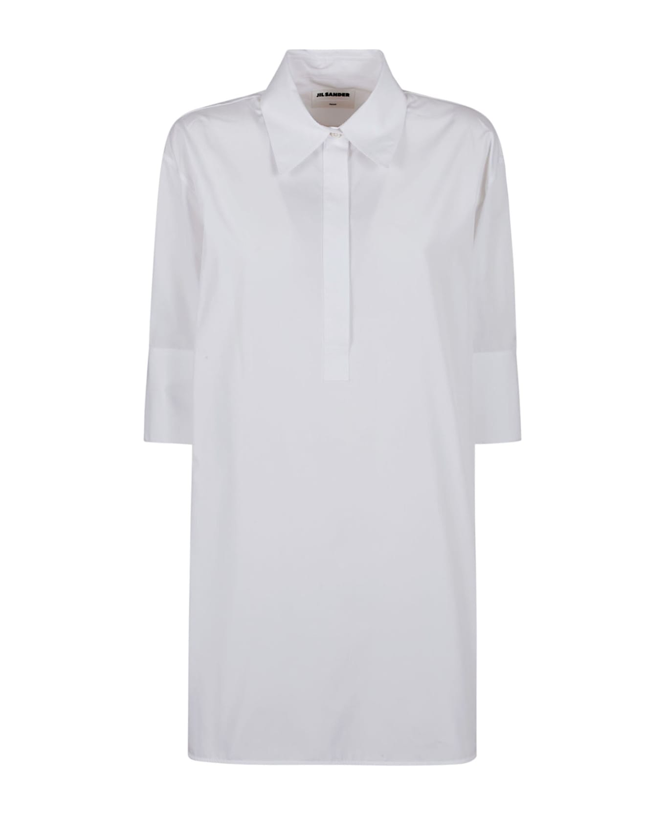 Friday cotton shirt BY JIL SANDER. Classic collar; hidden front button closure; 3/4 sleeve. Embroidered JS monogram detail.