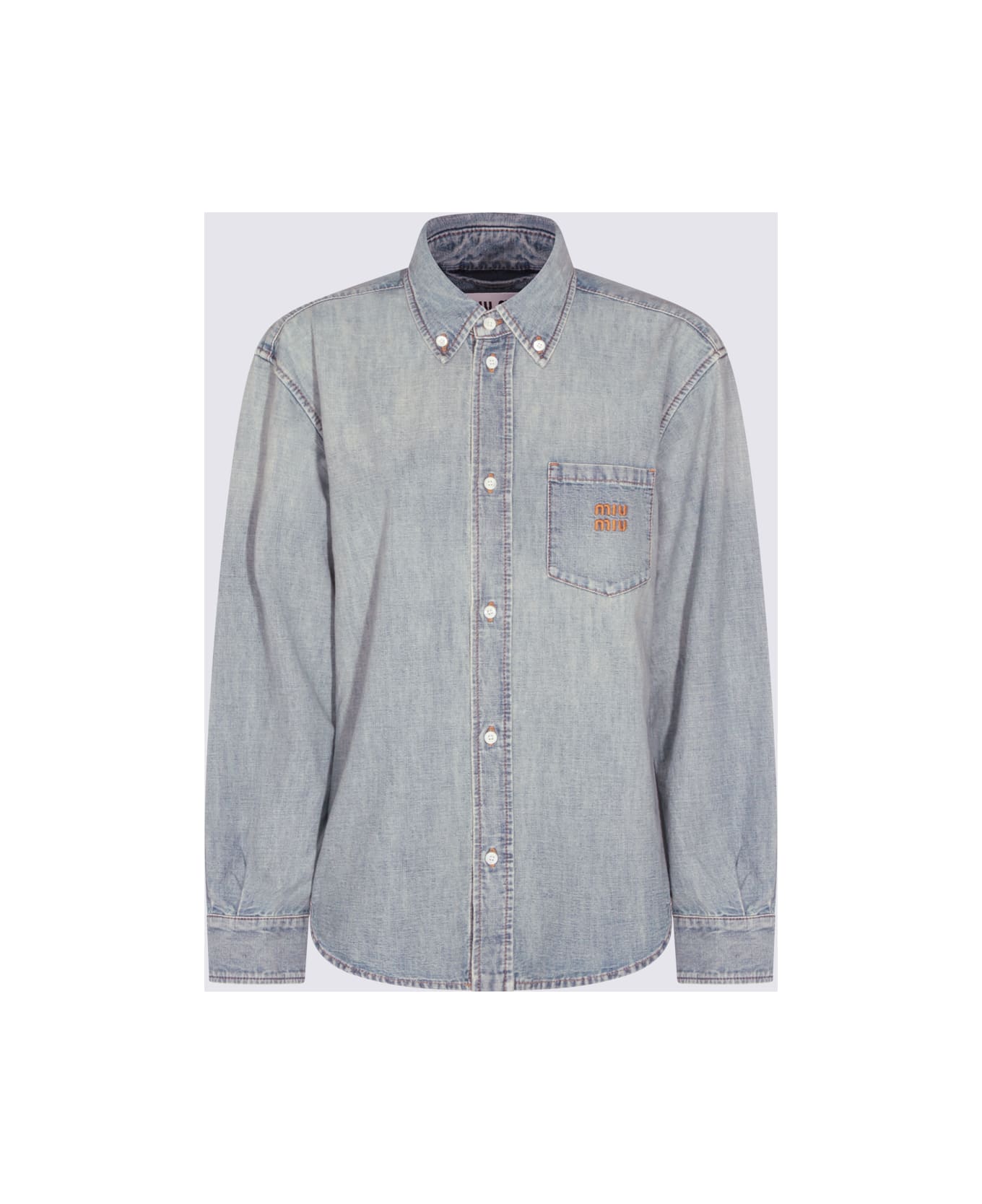 Light blue cotton shirt from Miu Miu featuring classic collar, long sleeves, buttons fastening, frontal pocket with logo detail and regular vestibility. Composition: _, 100% Co