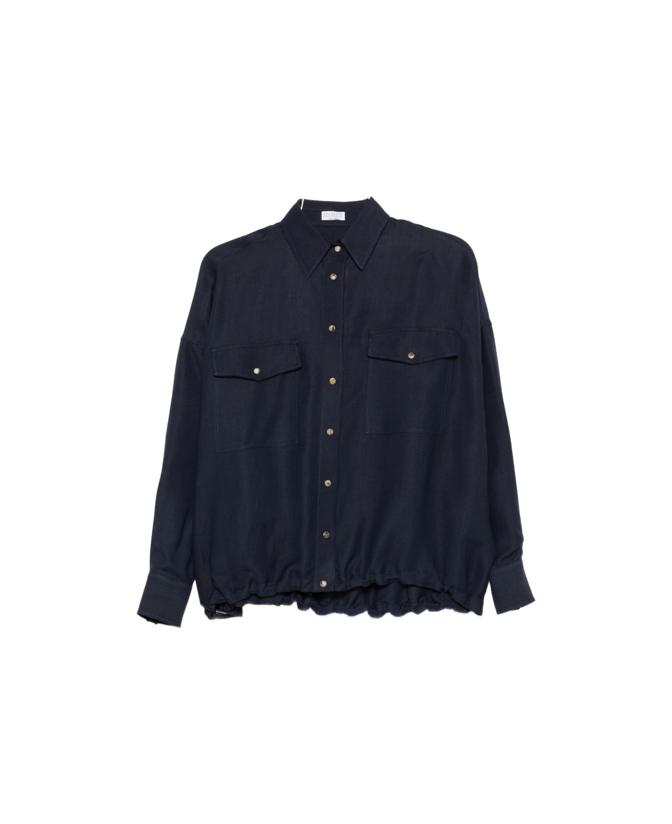 blue front button fastening two front patch pockets elasticated hem buttoned cuffs Composition: 72% Viscose, 28% Linen