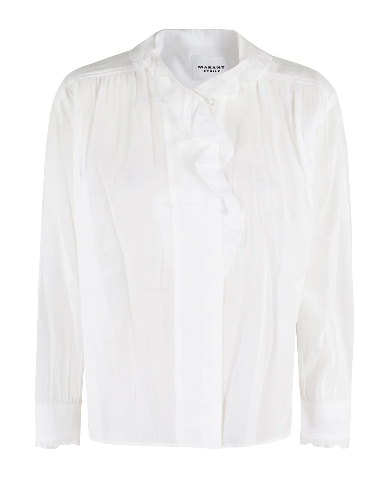 Pamias shirt - Marant Etoile - White color - Cotton voile fabric - V-neck with ruffle - Long sleeve with dropped shoulder - Front button closure - Regular fit
