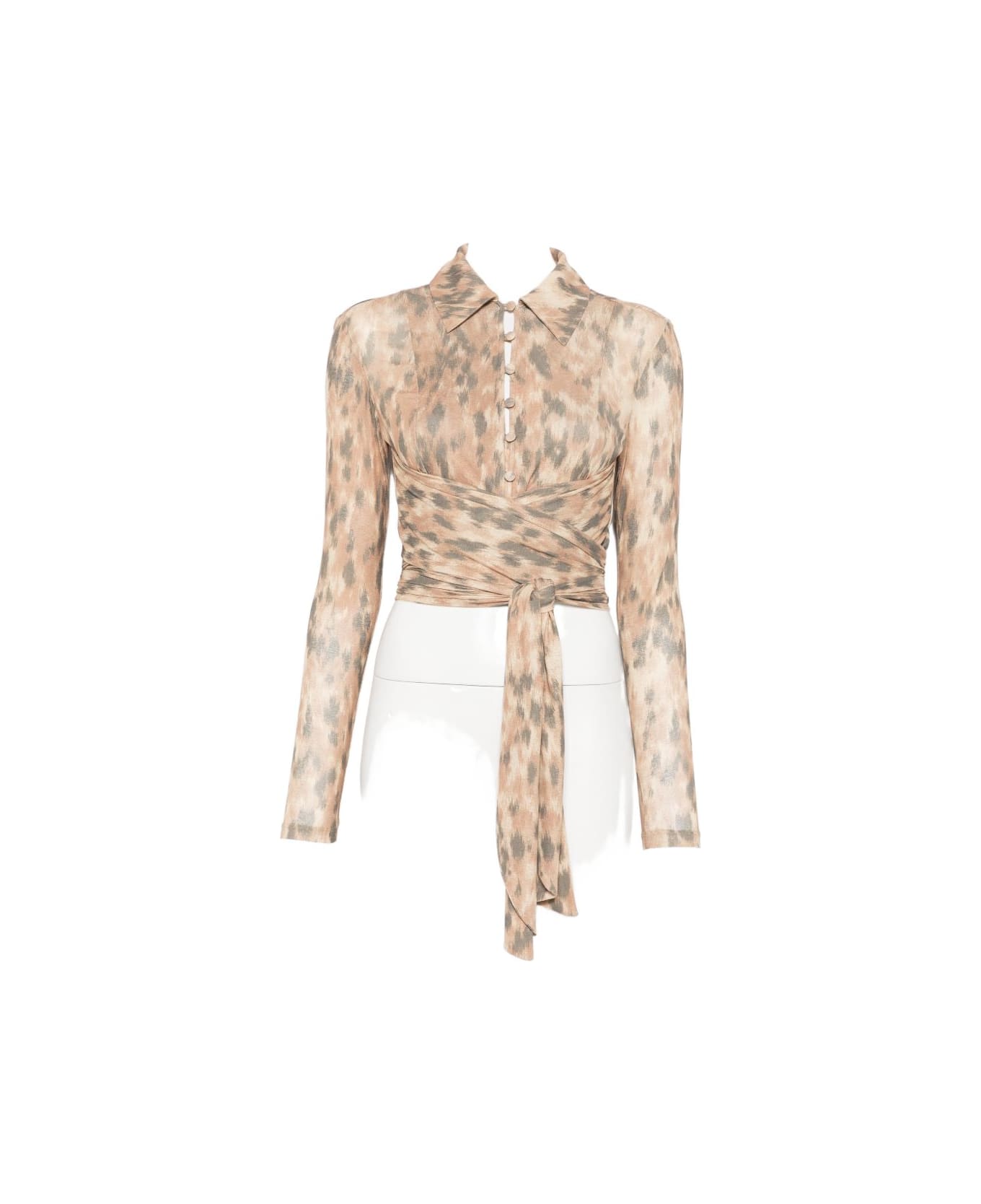 beige animal print button fastening long sleeves tie waist Composition: 100% Recycled Polyester