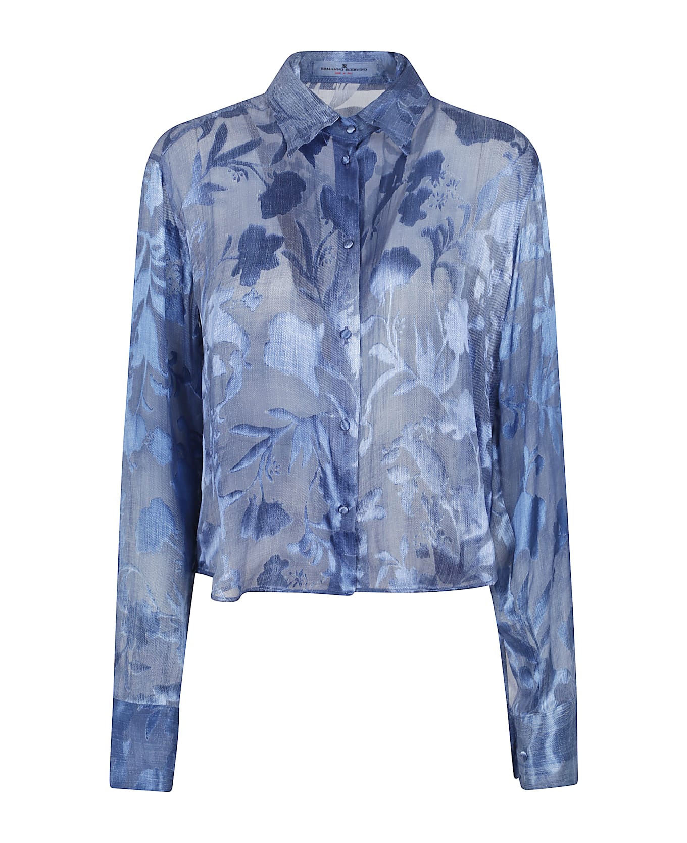 Shirt in devorè of natural viscose by ERMANNO SCERVINO. Closure with covered tone-on-tone buttons; classic shirt collar, also present on the cuffs. Featured with denim print.
