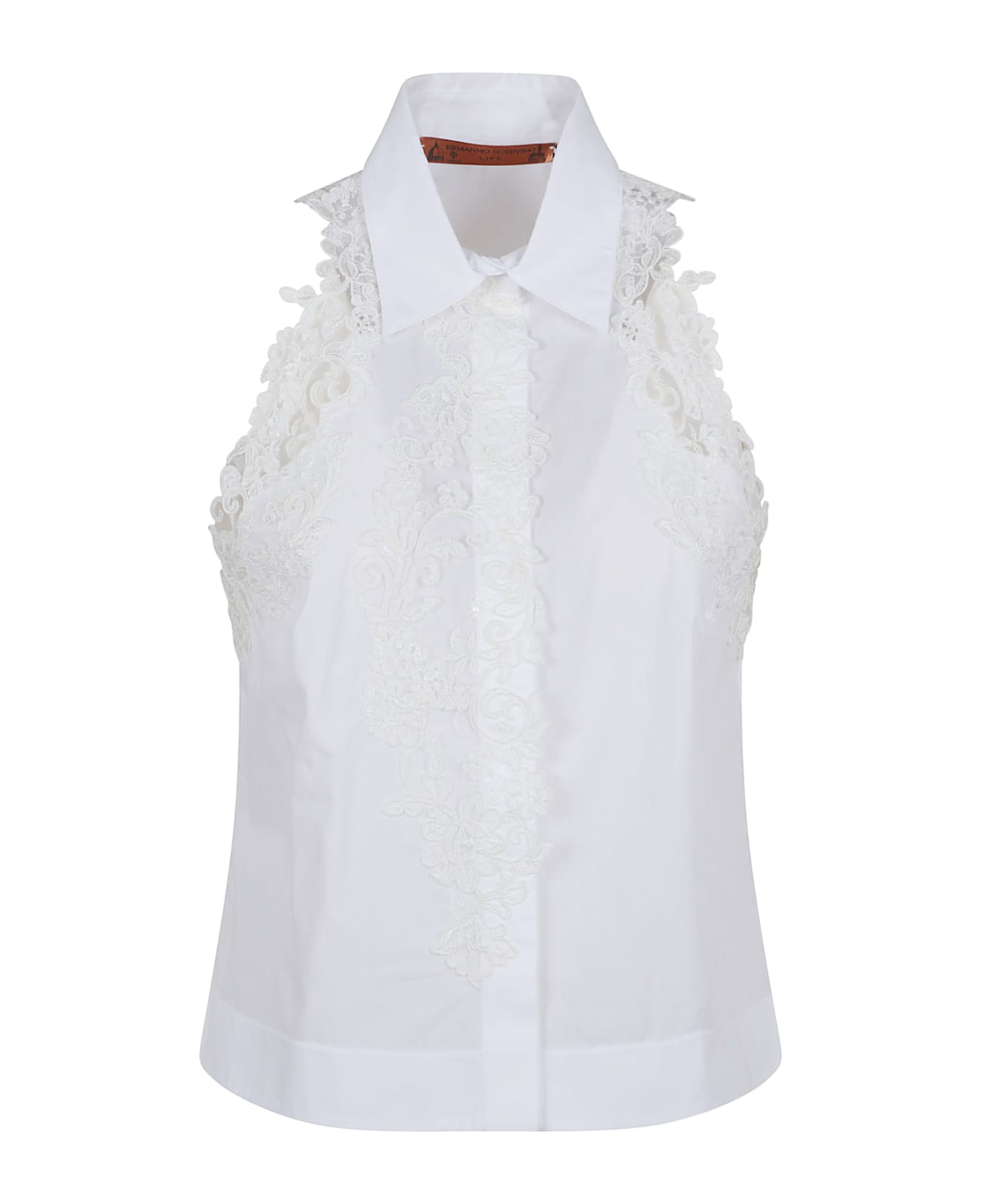 cotton shirt men`s collar American neckline on the front and back. covered buttons and lace trim
