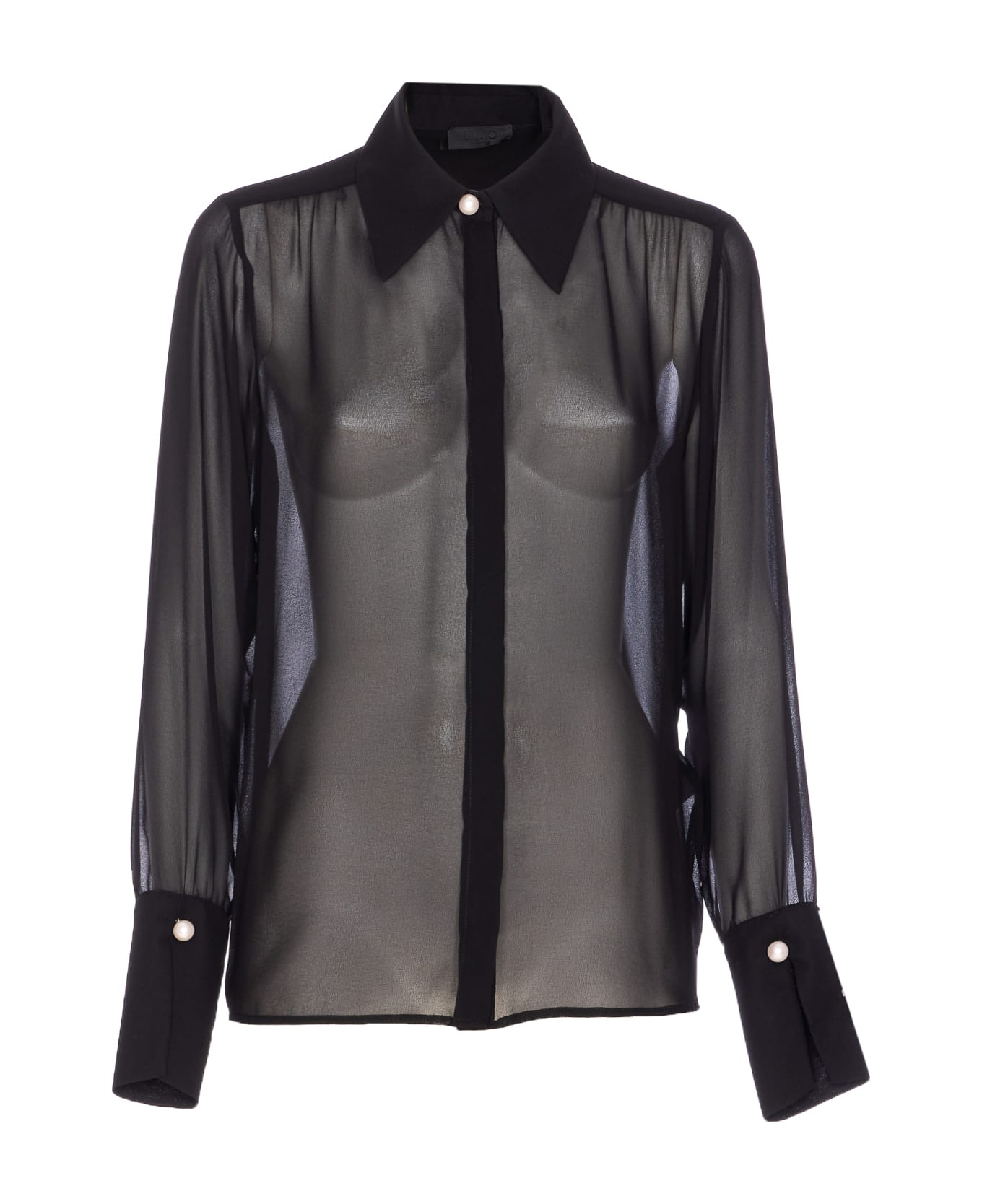 Liu Jo black regular collar, long sleeves, buttons closure, jewel button on cuffs, transparent effect