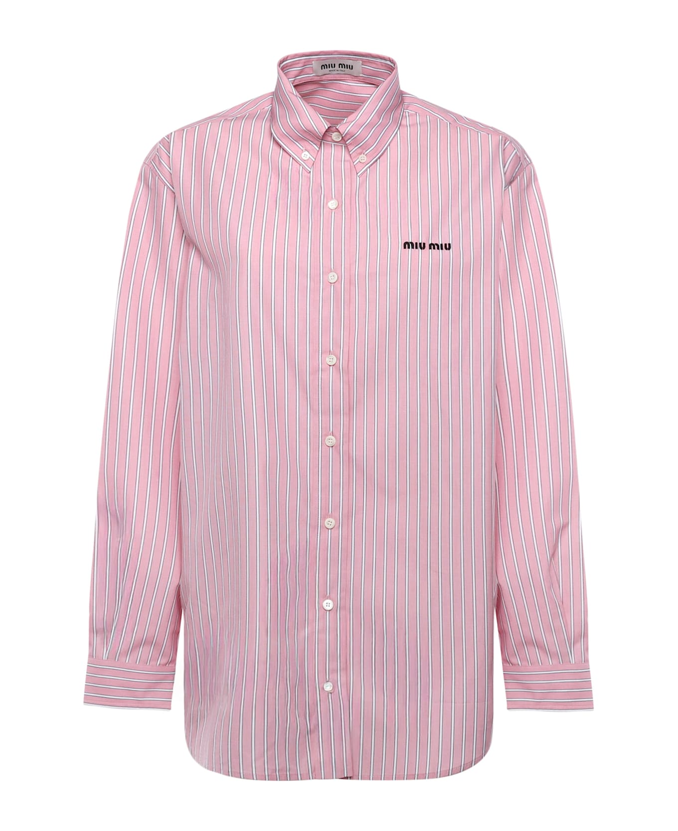 -Made of cotton poplin -Front button closure -Long sleeves -Lettering logo -Made in Italy -Size shown is 38 -Color: Pink