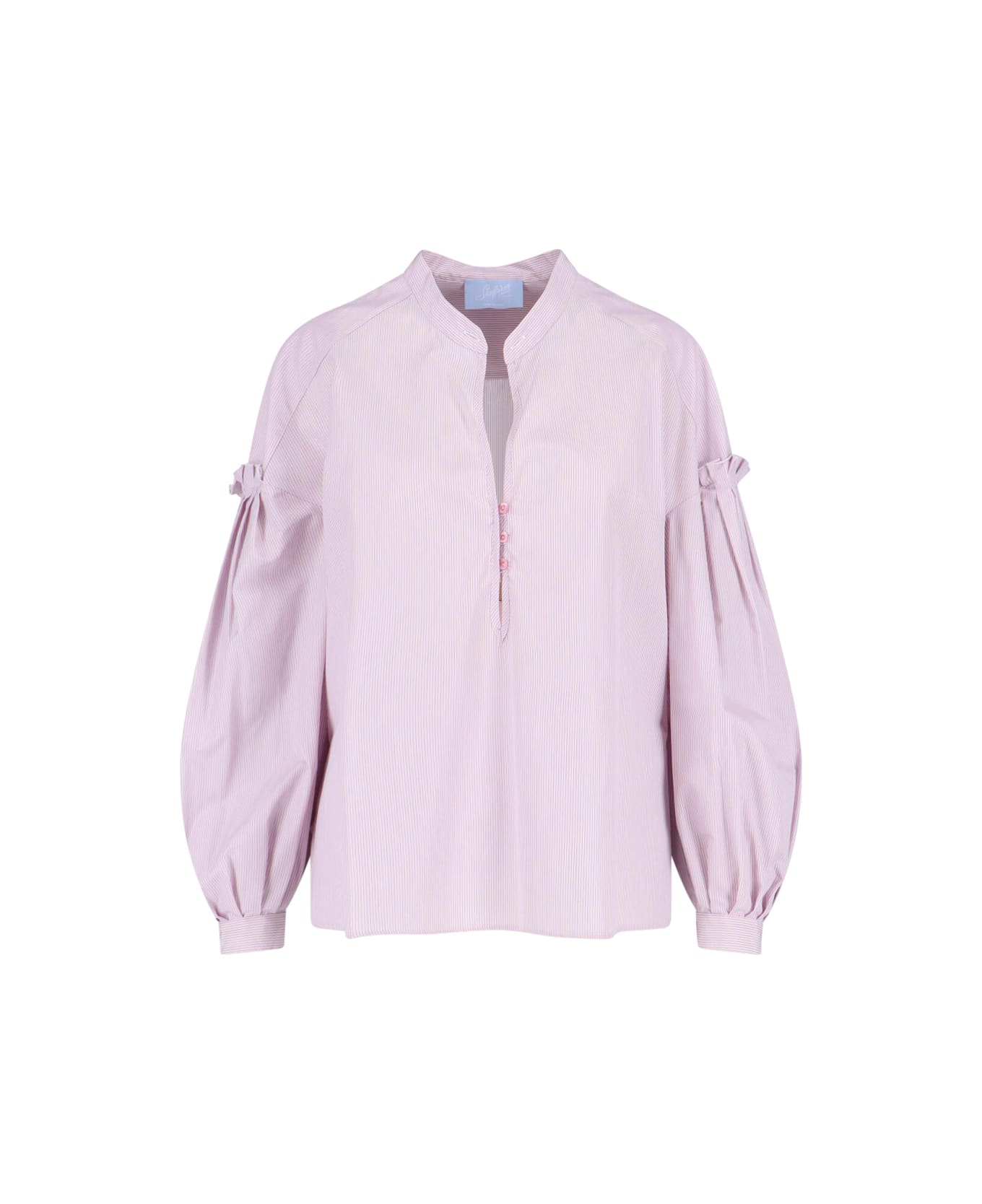 Seafarer striped pink cotton shirt with crew neck, button closure, long sleeves, button cuffs, straight hem.