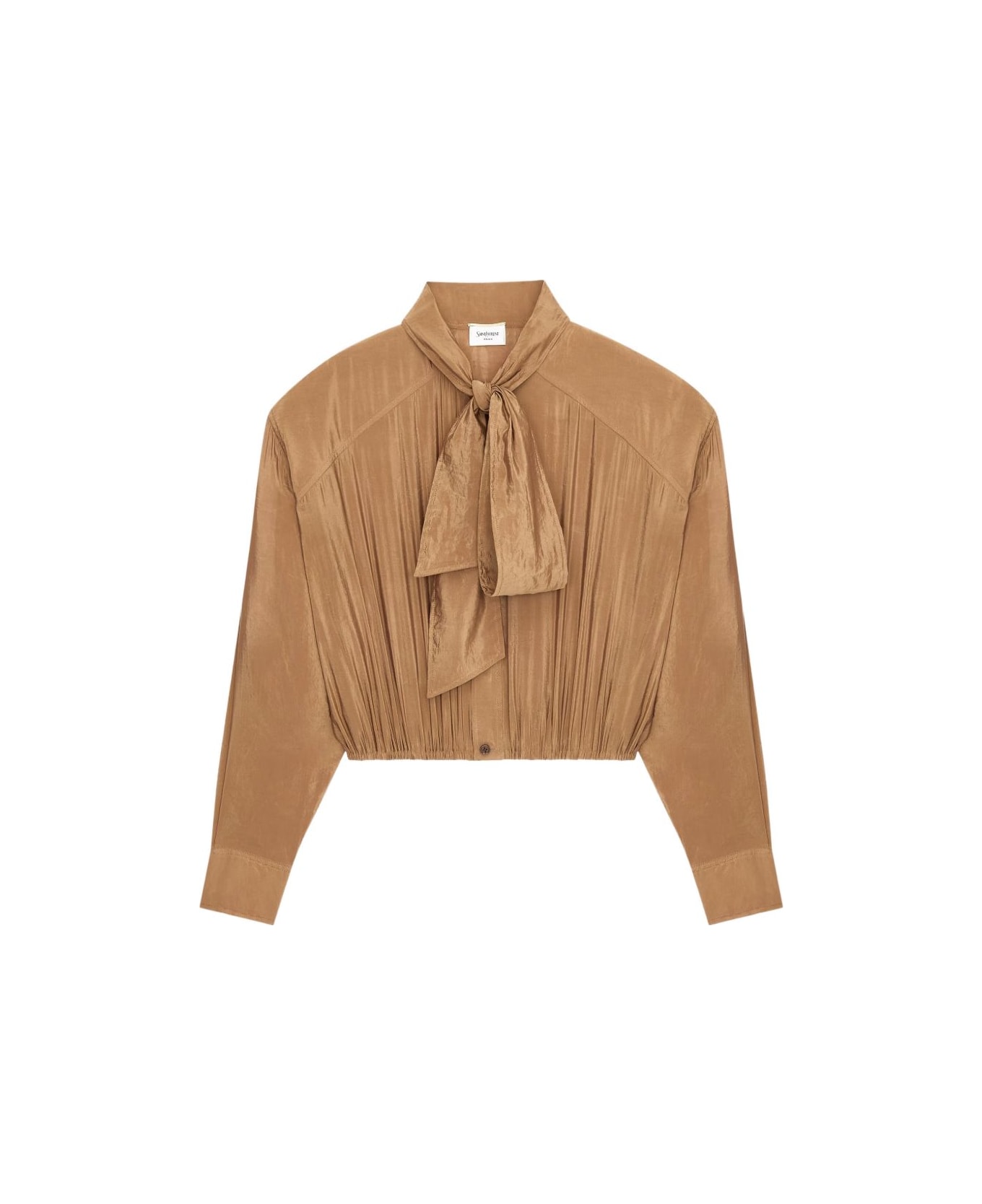 brown tie detail front button fastening cropped Composition: Polyester, 52% , Polyamide, 48%