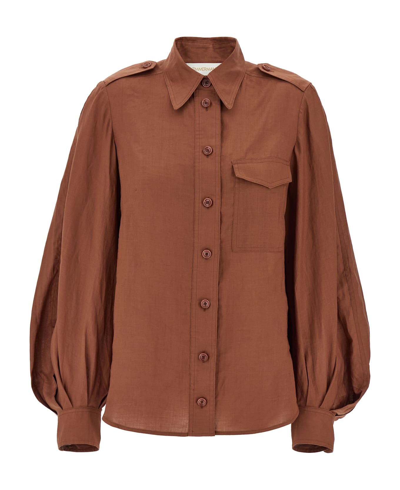 'Utility' ramie shirt, collar, front pockets with buttons, front closure, long sleeves with cuffs.