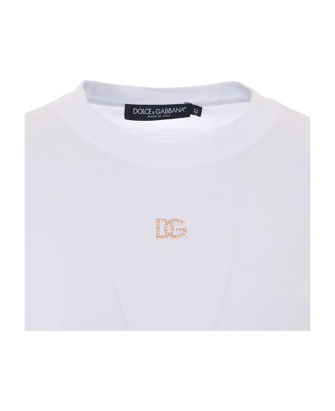 Dolce&Gabbana white t-shirt, crewneck, rhinestones dg logo on front, crewneck Composition: 100% Cotton