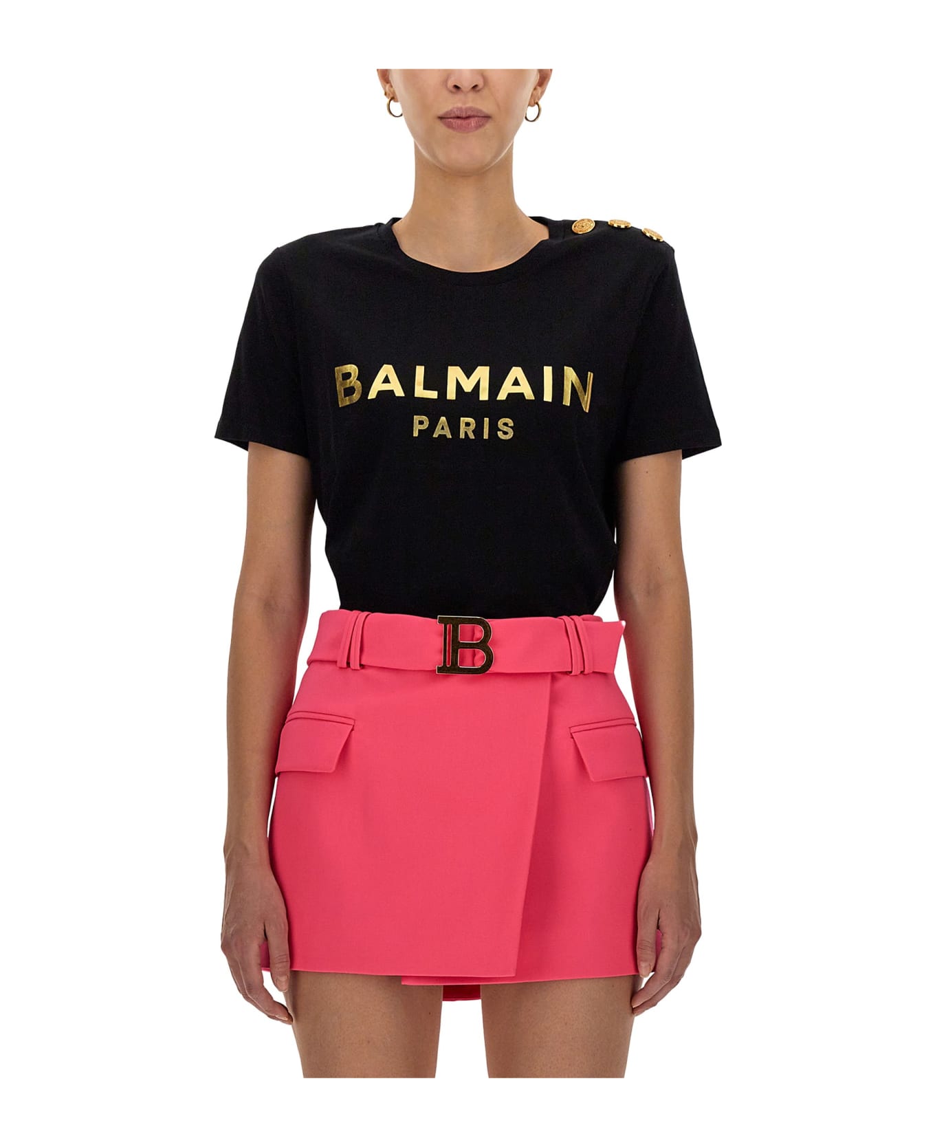 - Crossbar. - Gold Embossed Buttons On The Shoulder- Laminated Logo- 100% Cotton- Made In France- The Model Is 180 Cm Tall And Wears Size S