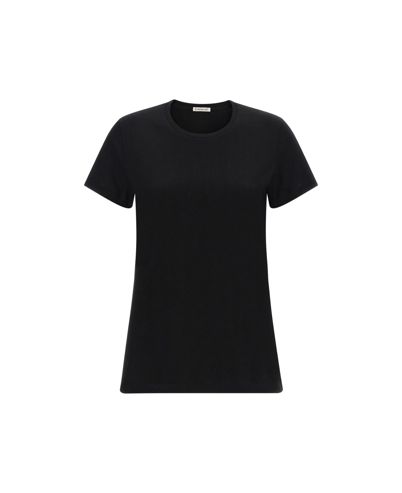 Black color, solid color, crew neck, short sleeves, straight hem.