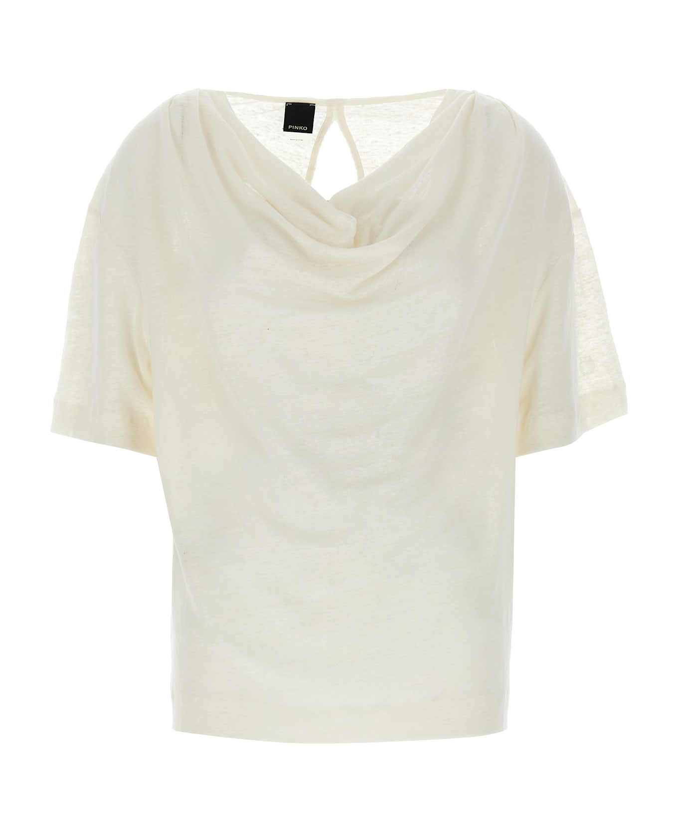 'Mambo' linen jersey t-shirt with shawl collar and teardrop back neckline.