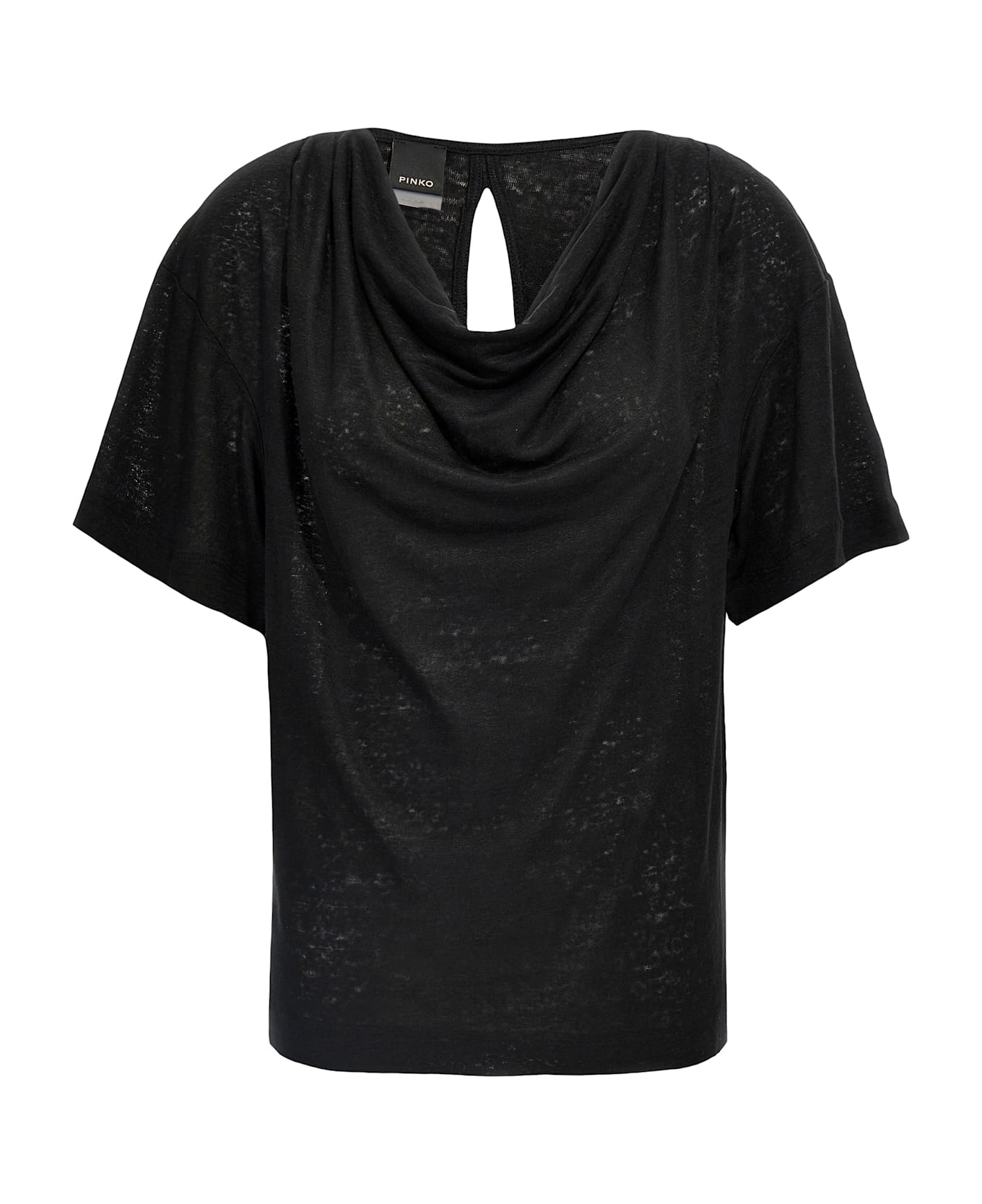 'Mambo' linen jersey t-shirt with shawl collar and teardrop back neckline.