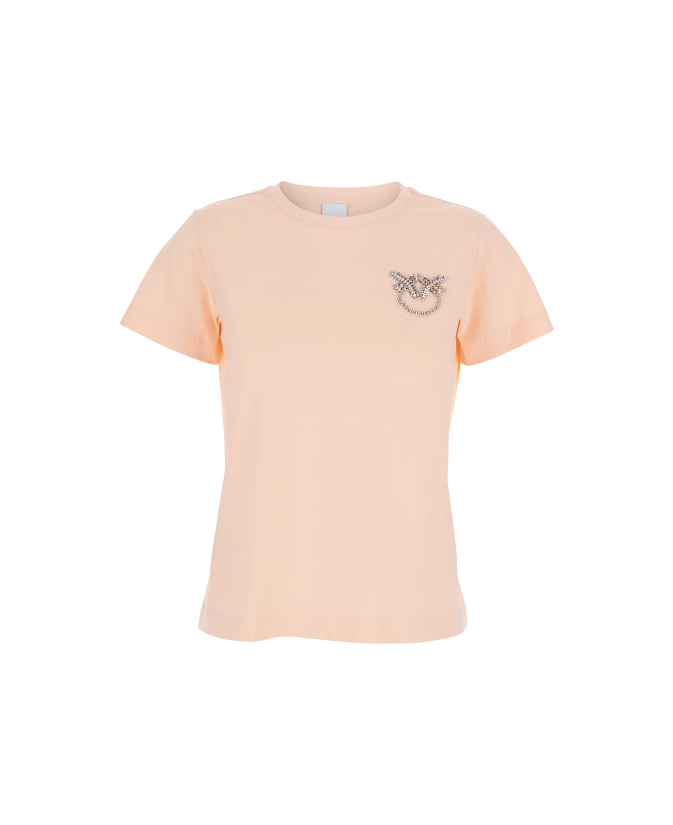 Nambrone Pink Crewneck T-shirt With Love Birds Diamond Cut Logo On The Chest In Cotton Woman