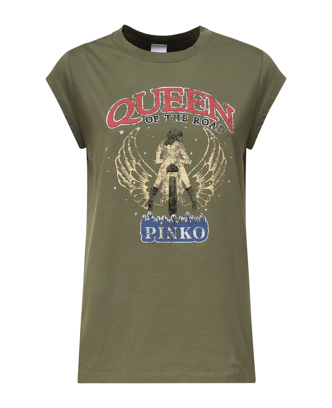 -Made of garment-dyed cotton jersey with an old effect -Maxi print on the front -Slim fit silhouette -Half sleeves -The size shown in the photo is S -Color: Military green