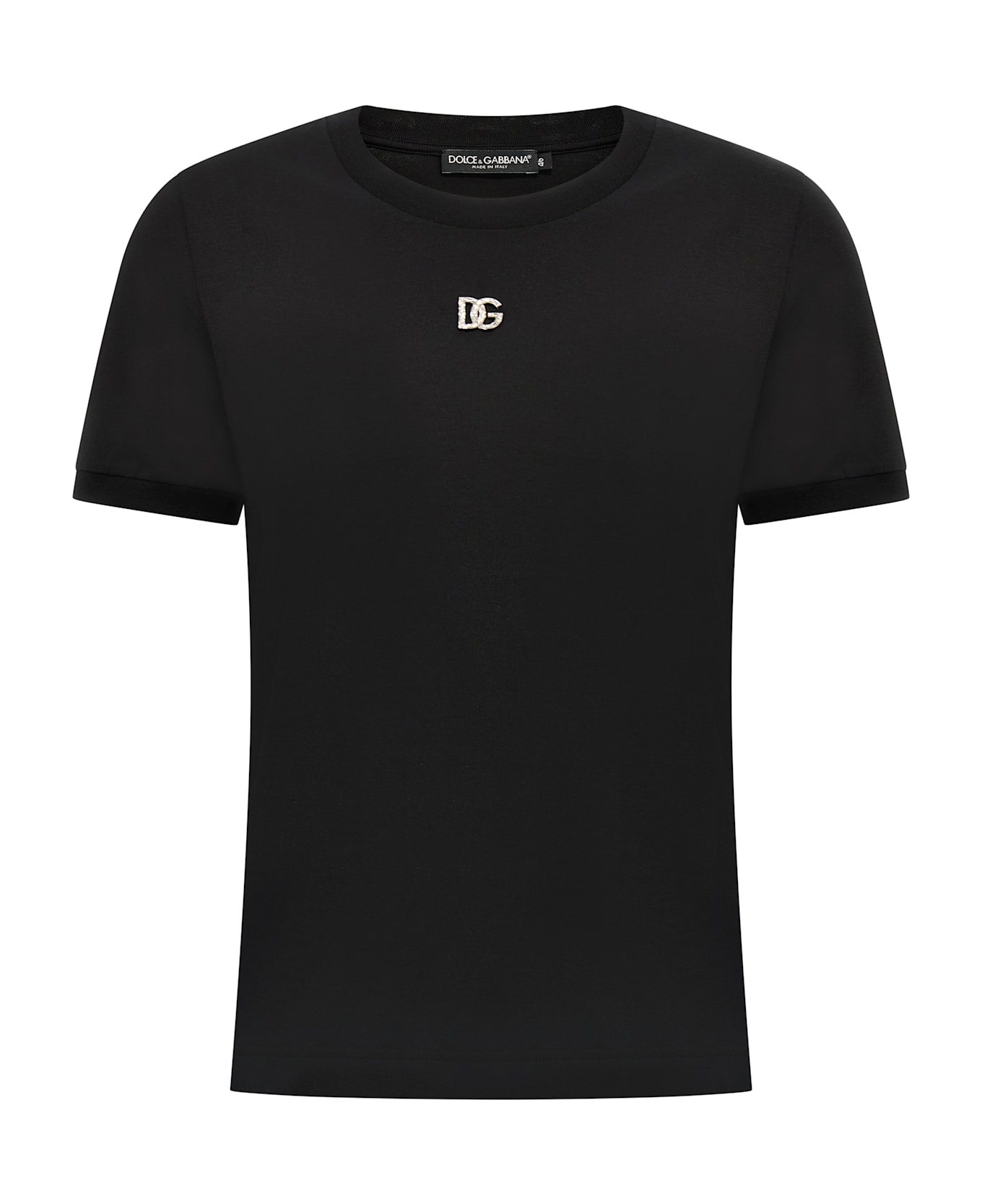 Cotton T-shirt with rhinestone logo appliqué on the front, crew neck, short sleeves. Composition: 100% cotton