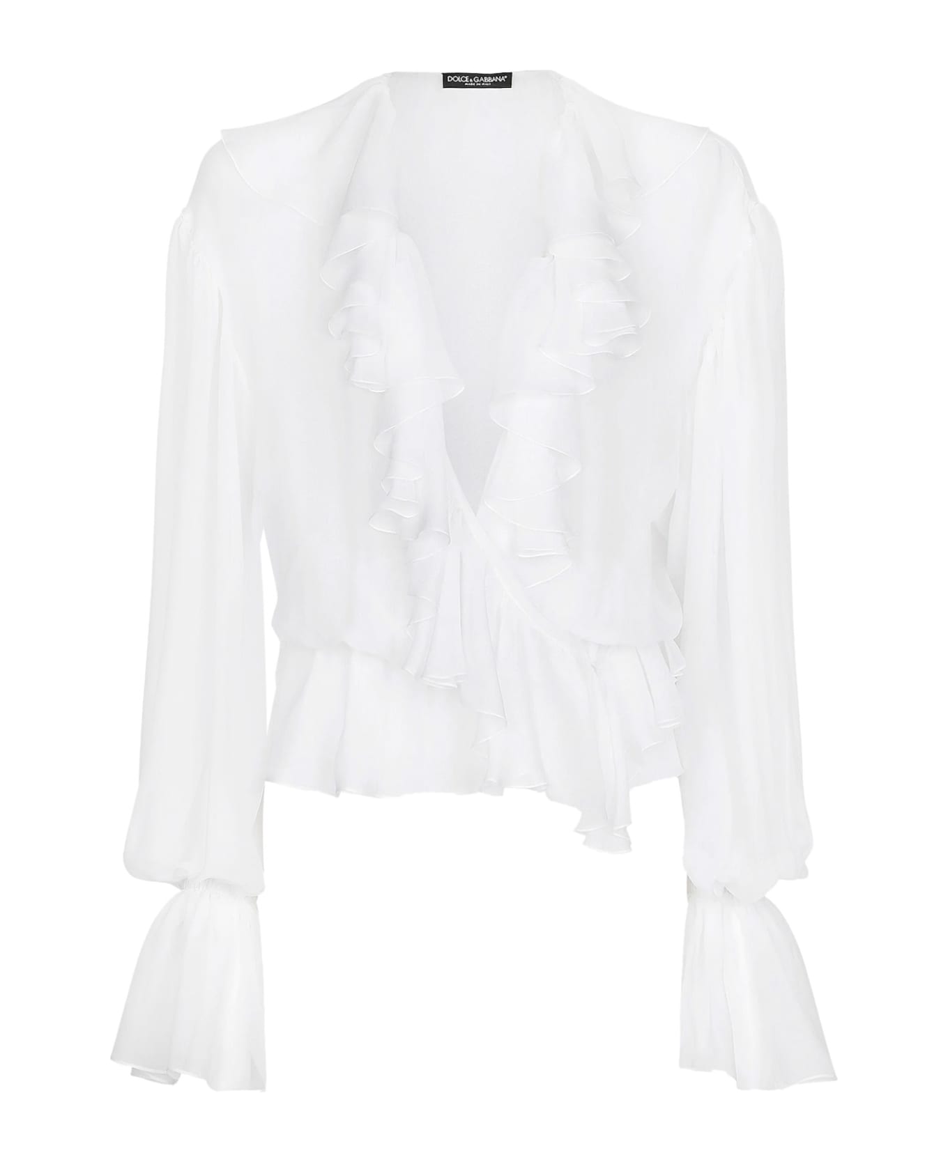 SKU: F79FGTFU1AT_W0800 - V-neckline with rouches long sleeves with cuff and rouche elastic waistband made in italy 100% silk