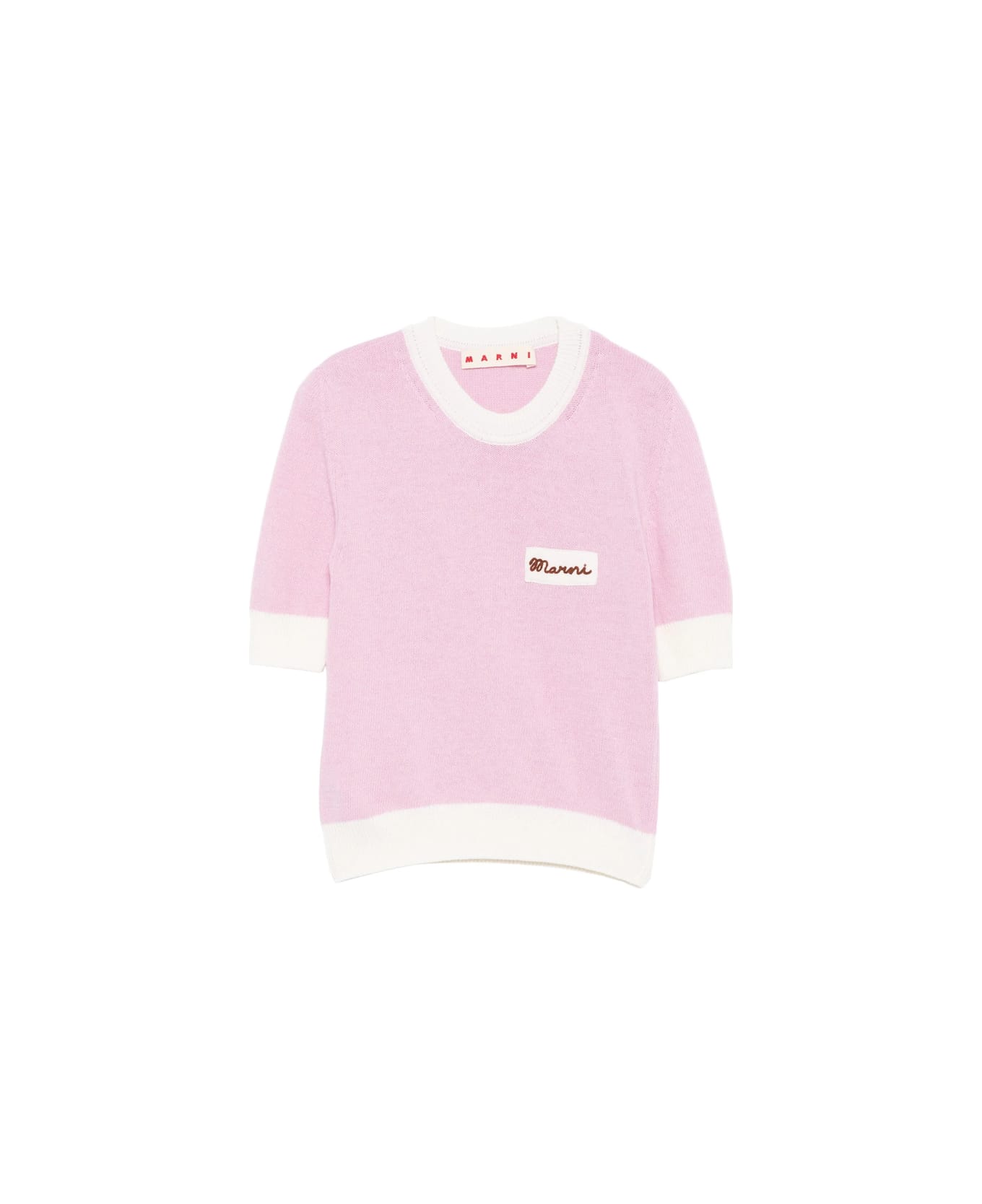 light pink embroidered detail round neck short sleeves ribbed hem and cuffs