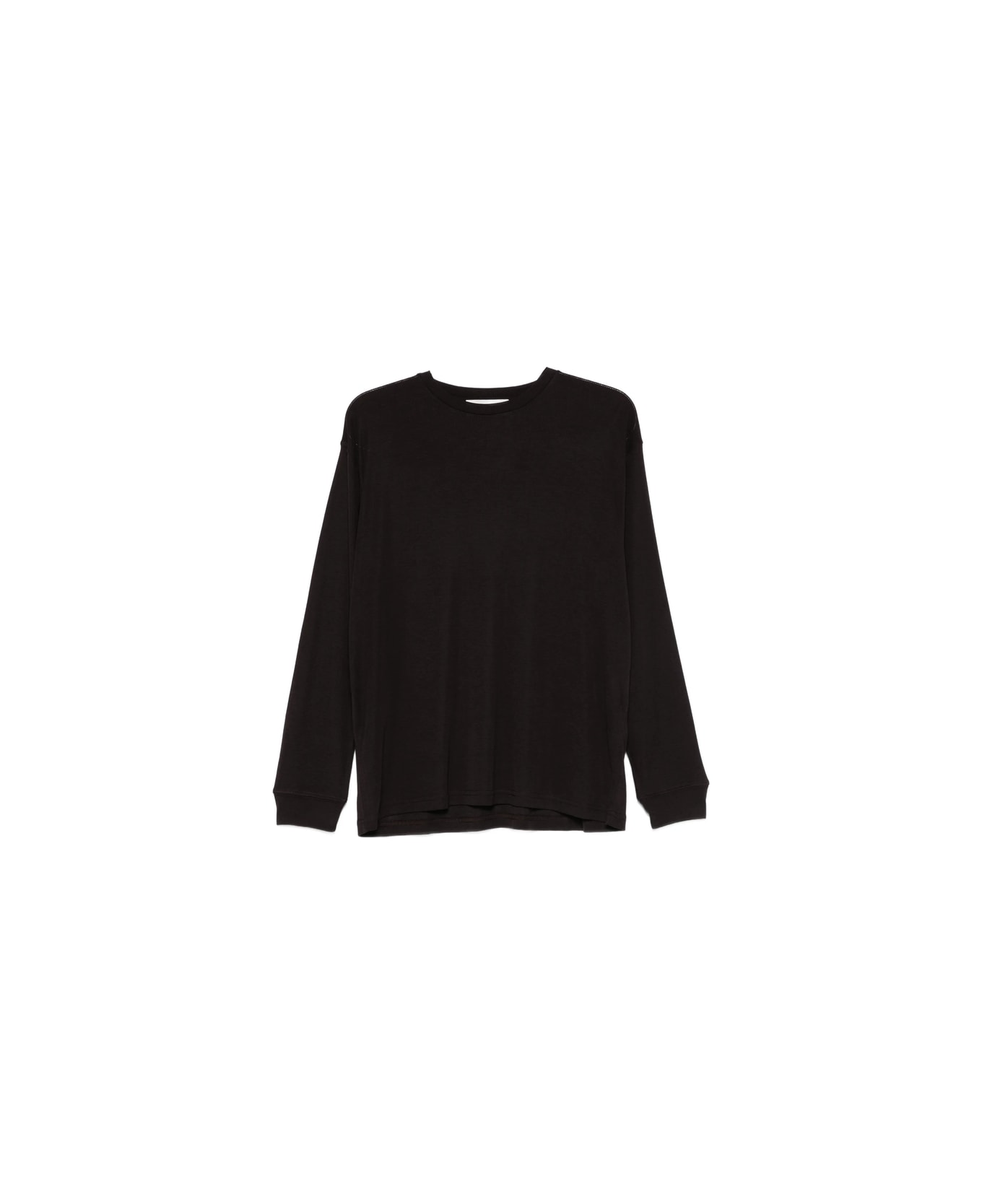 black topstitch detail long sleeves round neck ribbed cuffs straight hem
