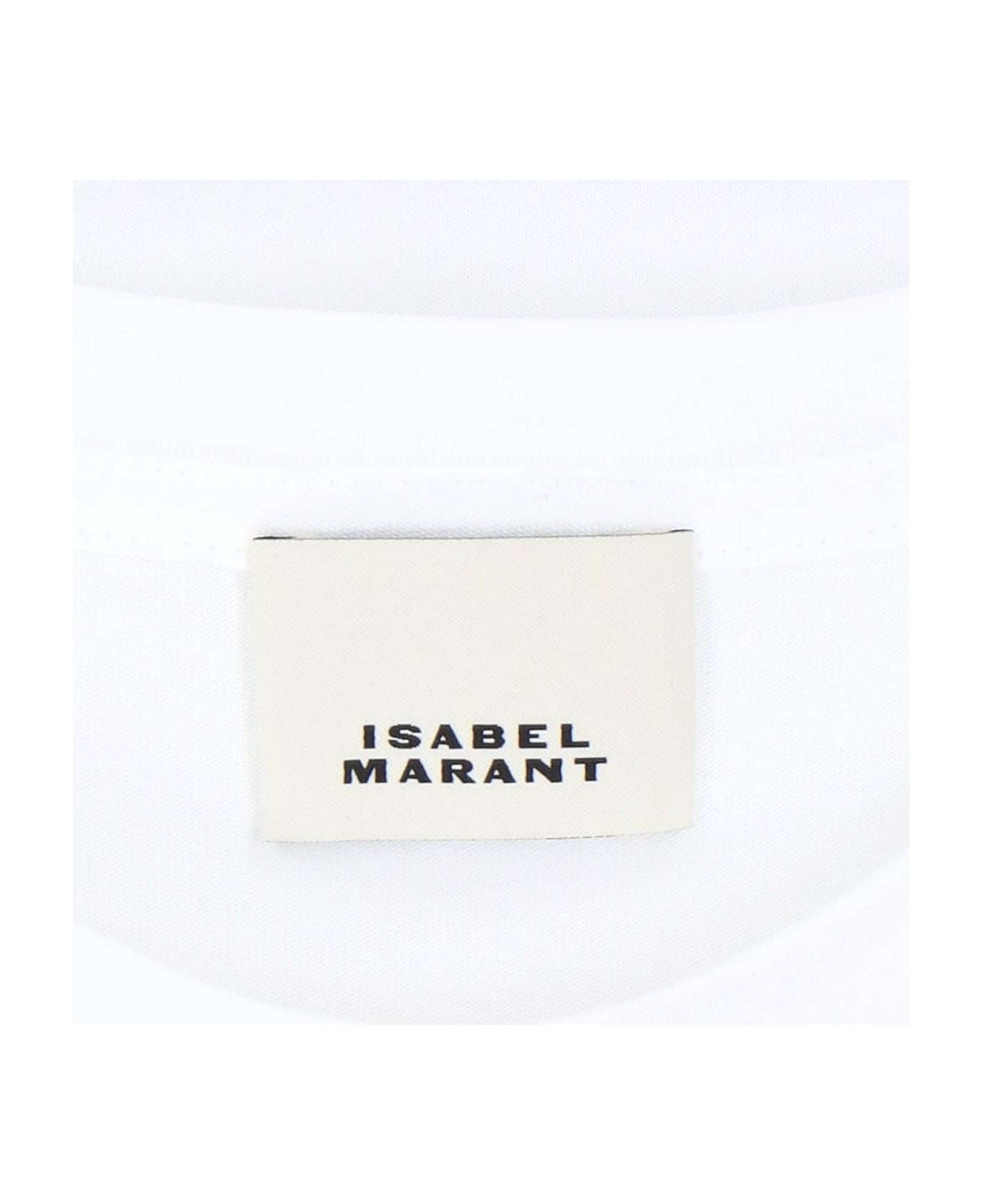 Isabel Marant 'Vidal' white cotton crew neck t-shirt with short sleeves, contrast black logo detail, straight hem.