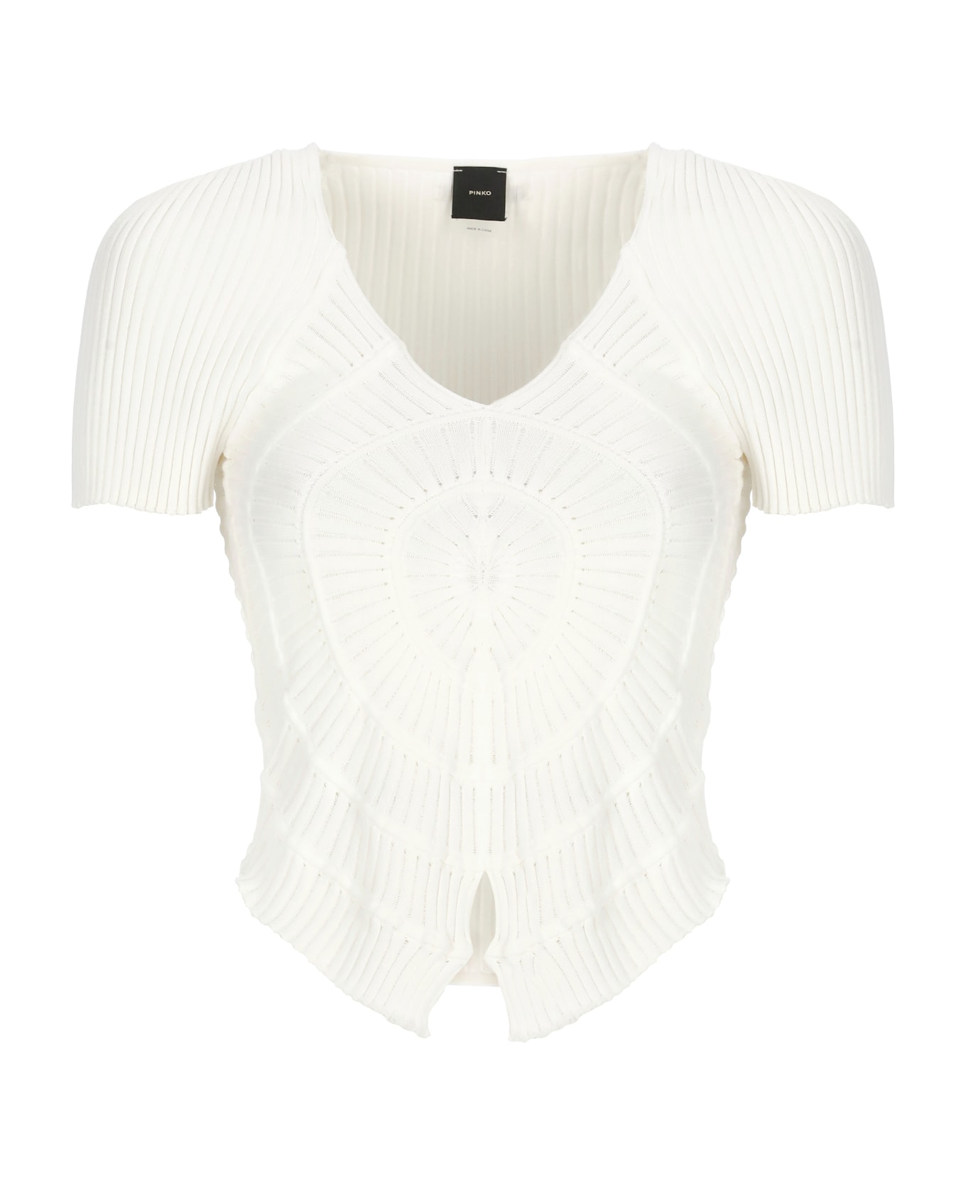 - White Pinko viscose t-shirt for woman - V neck - Short sleeves - Asymmetric hem