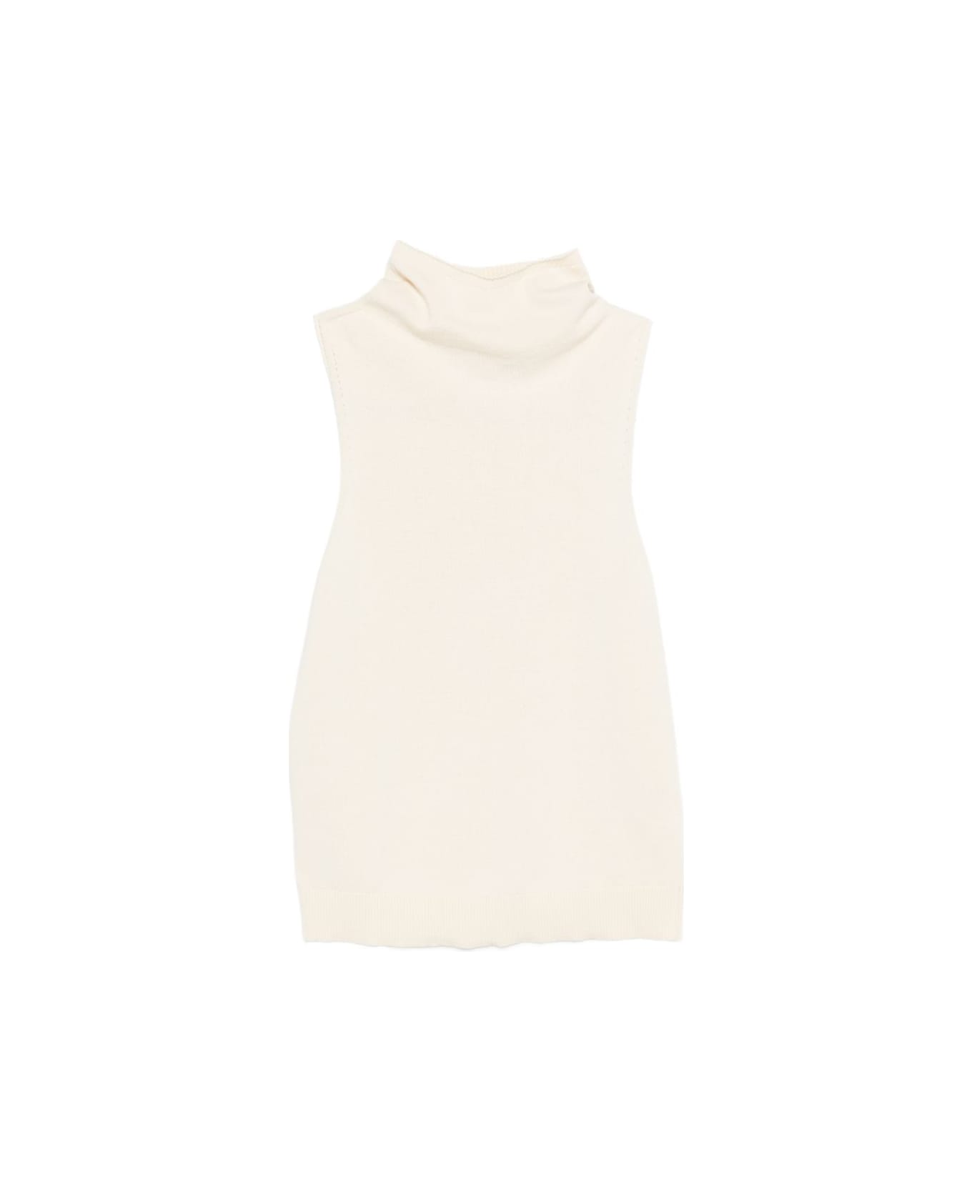 beige roll-neck sleeveless ribbed hem