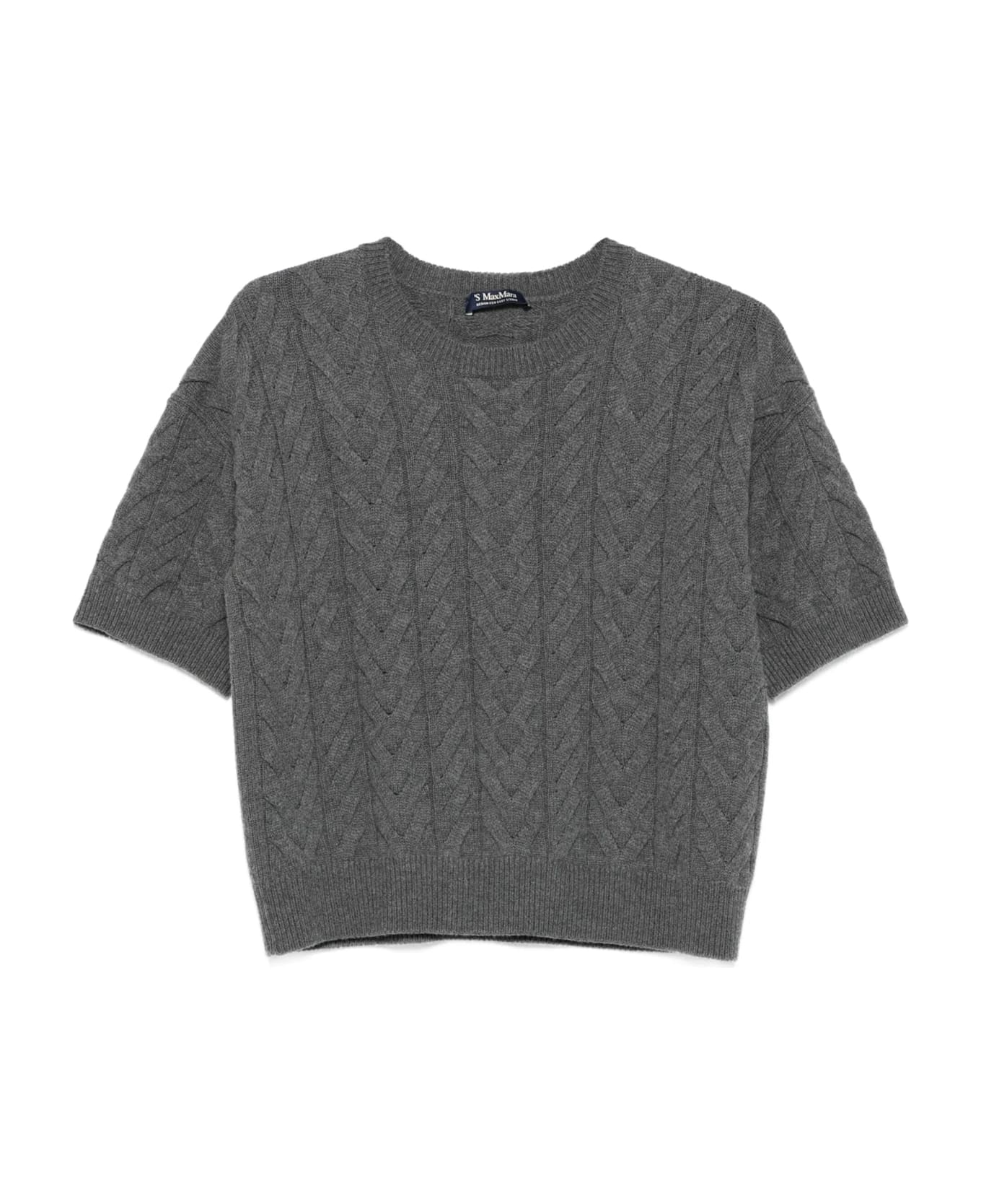 Dominus sweater by MAX MARA in grey wool, featuring cable knit, round neckline and short sleeves with dropped shoulders. Composition: 100% Wool Ovis