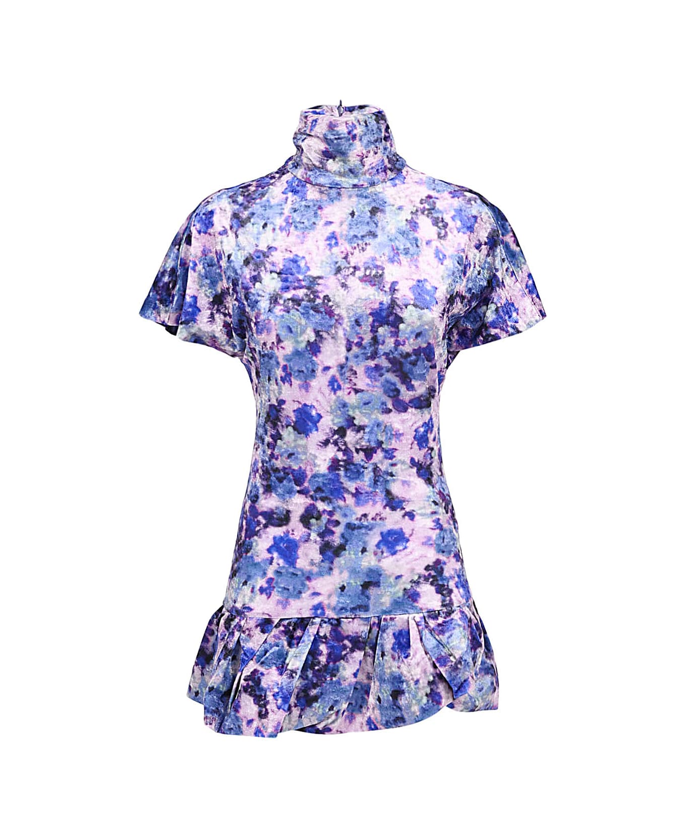 floral-print short-sleeve top from ISABEL MARANT featuring purple, all-over floral print, round neck and short sleeves.