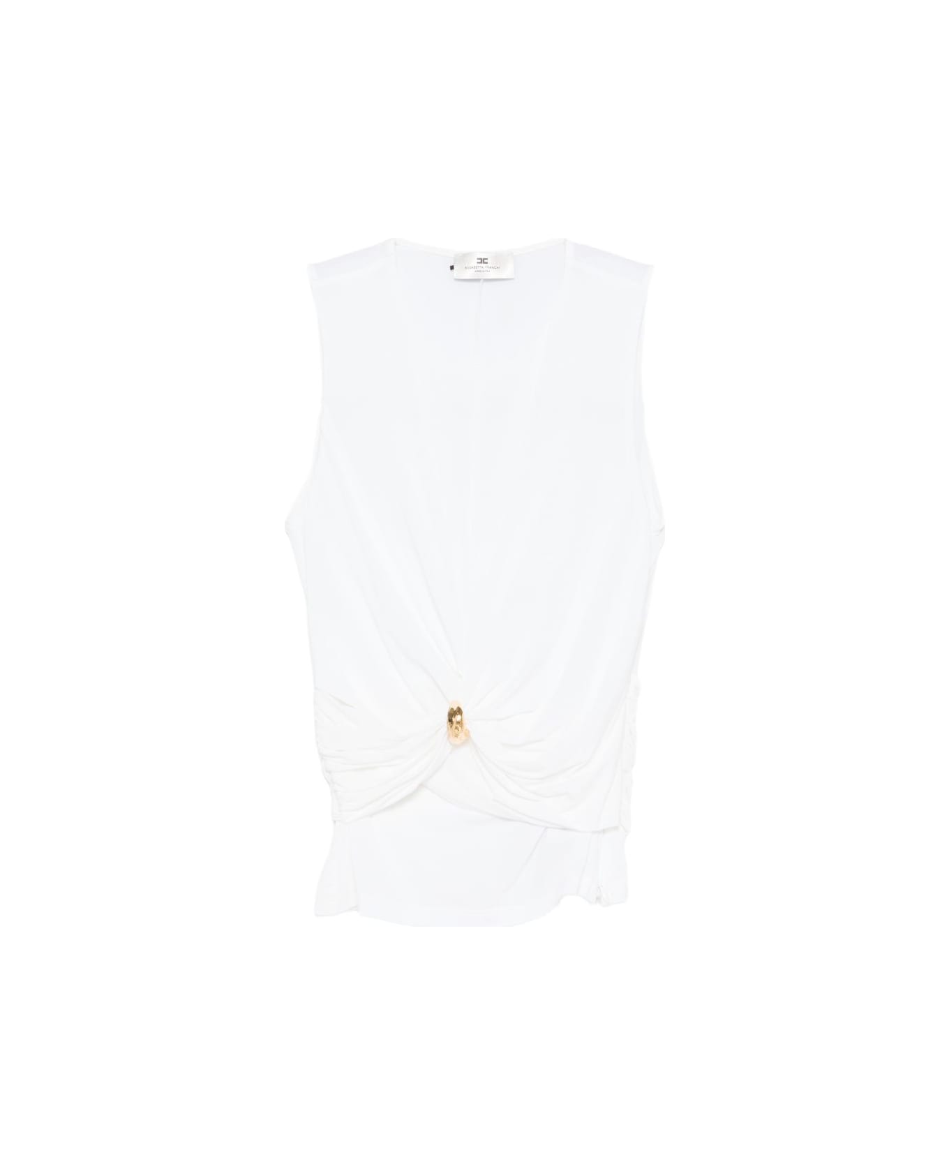 ivory knot detail gathered sides sleeveless round neck gold-tone embellishment
