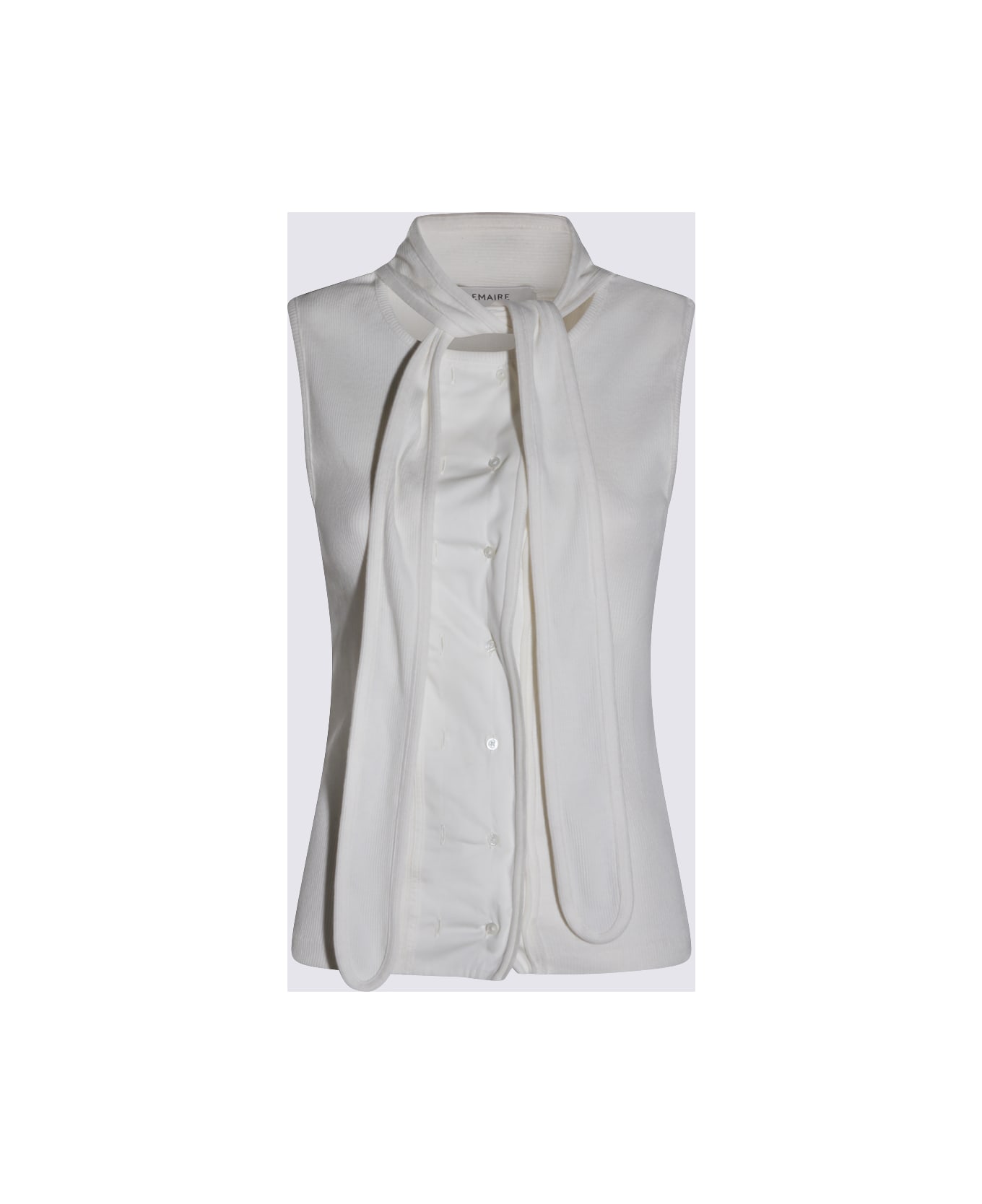 White cotton top from Lemaire featuring sleeveless, bow collar and regular vestibility.
