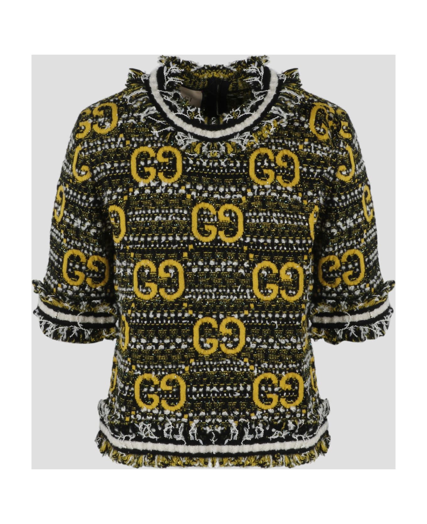 Gucci wool Mohair top, with contrasting lamé and bouclé tweeds GG. - SS23