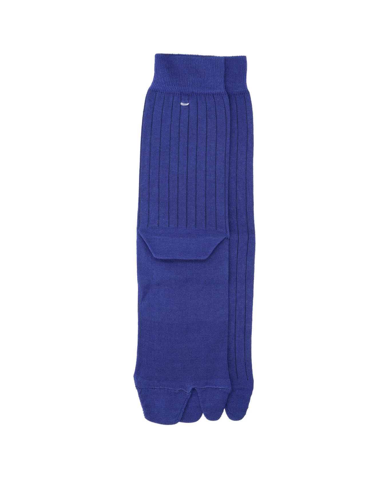 "Tabi" socks by Maison Margiela in blue cotton blend, ribbed texture, contrasting stitching.