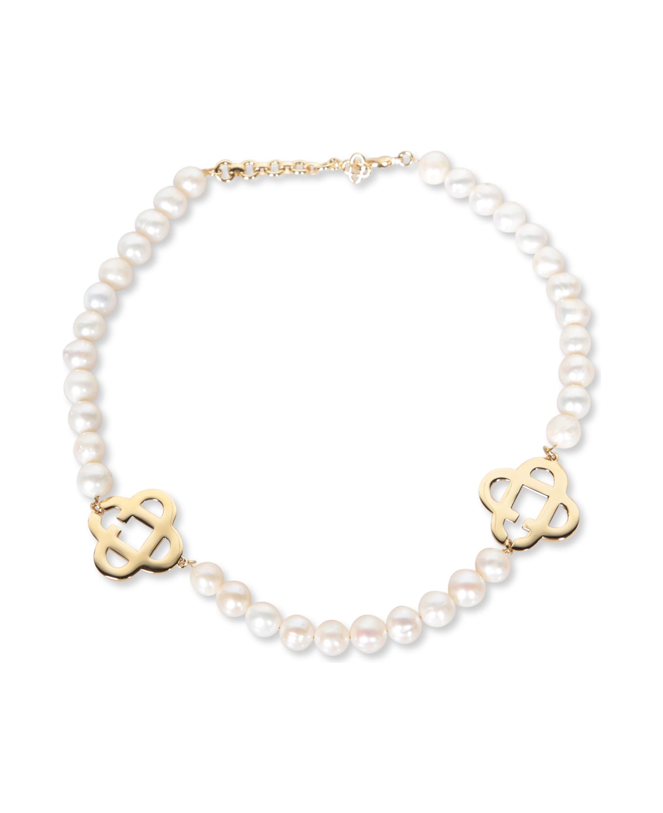Explore timeless elegance with Casablanca's pearl necklace, enhanced by golden charms with intertwined logos adding a distinctive touch of luxury. Composition: Brass, Freshwater Pearls