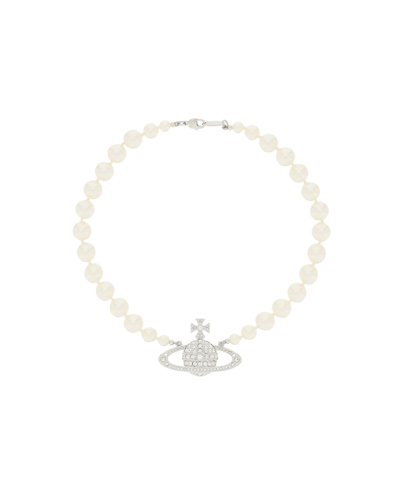 Bas Relief choker by Vivienne Westwood made with glass Swarovski pearls and embellished with the iconic Orb in silver-finished brass and timy crystals. Lobester clasp closure, One size. Composition: 100% BR
