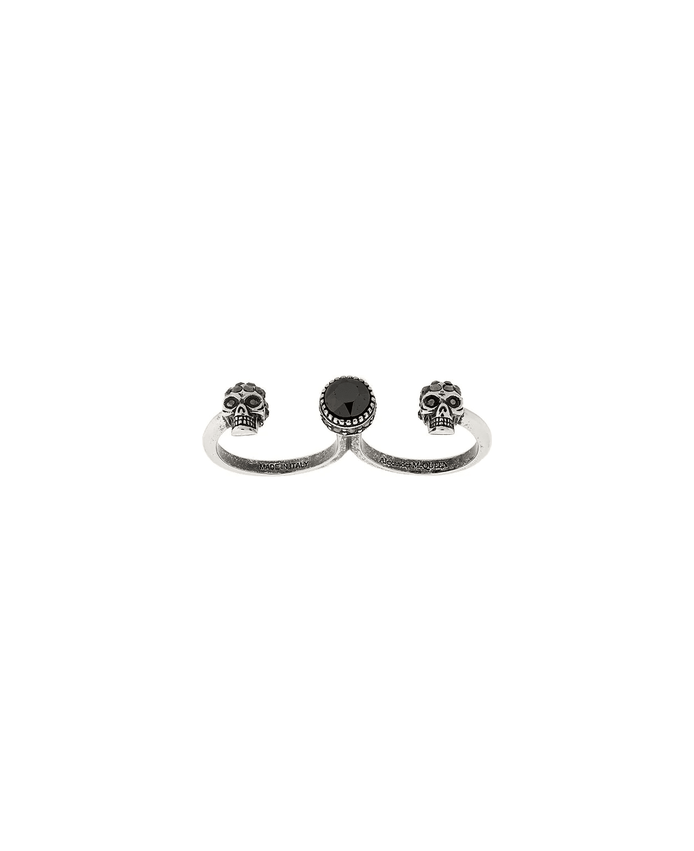 Skull double-ring for women signed Alexander McQueen made of silver-finished brass and adorned with Swarovski crystals. Composition: 100% Brass