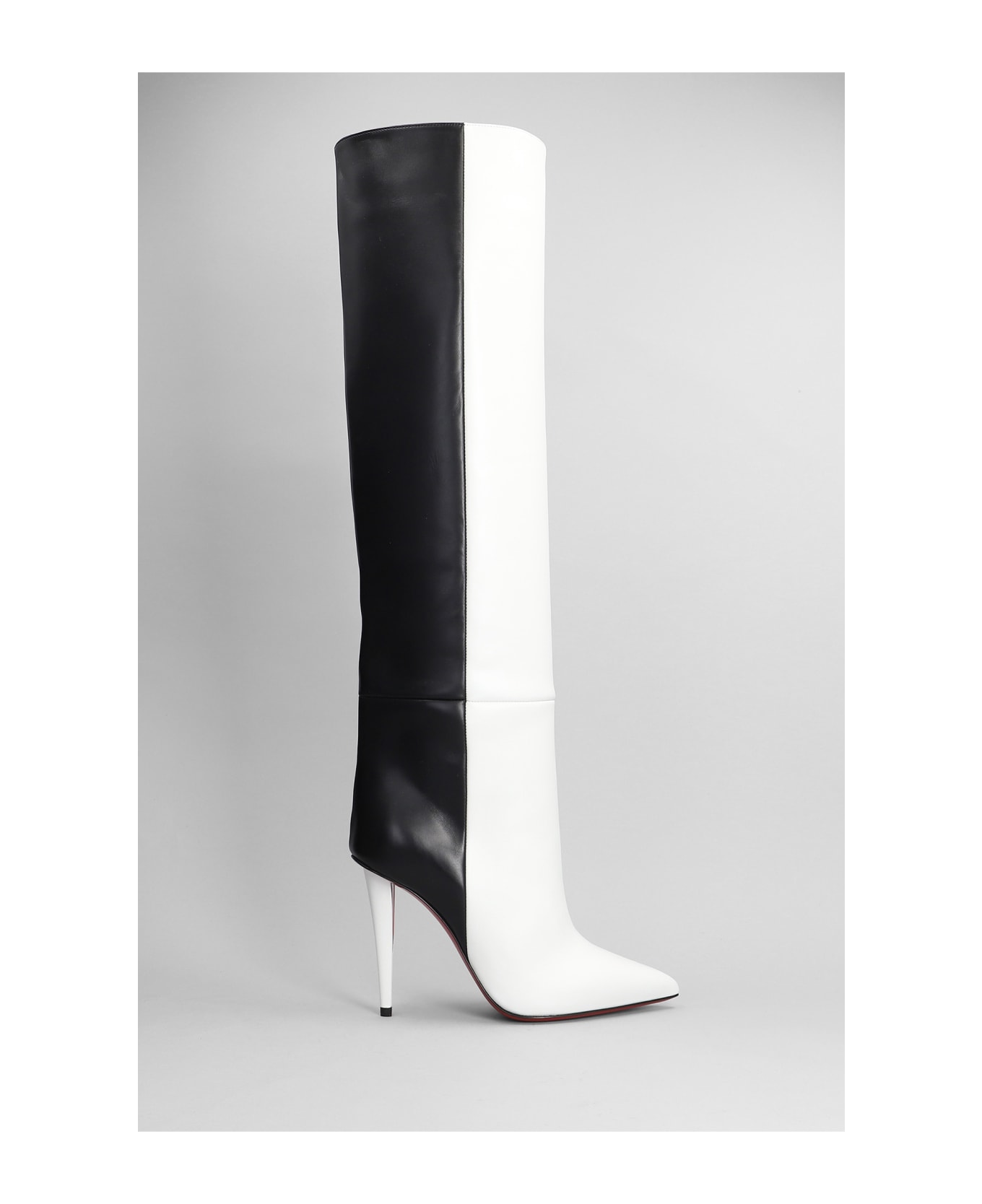 Astrilarge botta 100 High heels boots in white leather, bicolor, pointed toe, 110 mm heel, leather sole, iconic red sole, 100% leather, Made in Italy