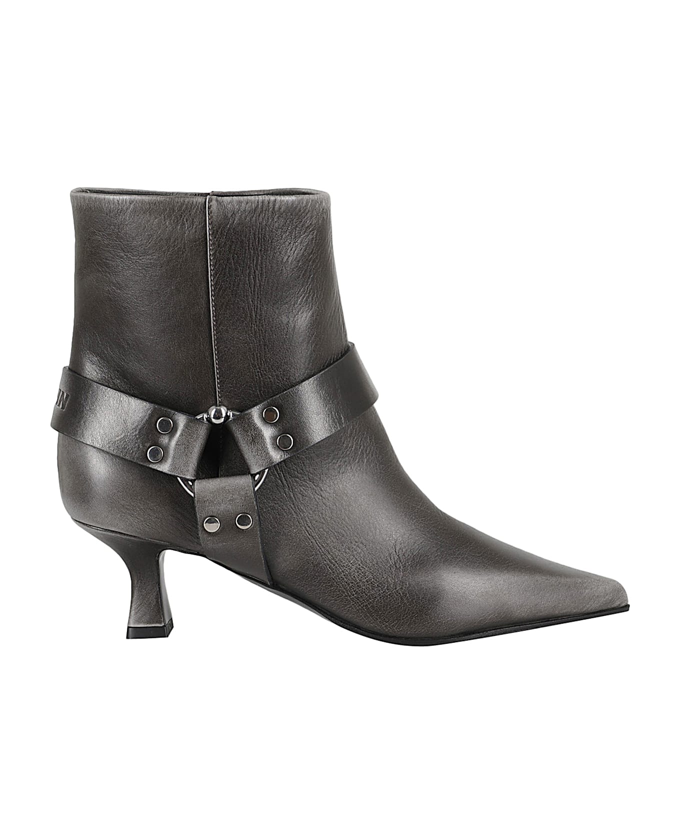 Avril ankle boot - 3Juin - Dark gray color - Smooth nappa leather - Pointed toe design - Strap detail and metal ring - Ankle height - Heel height: 5. 5 cm - Leather sole
