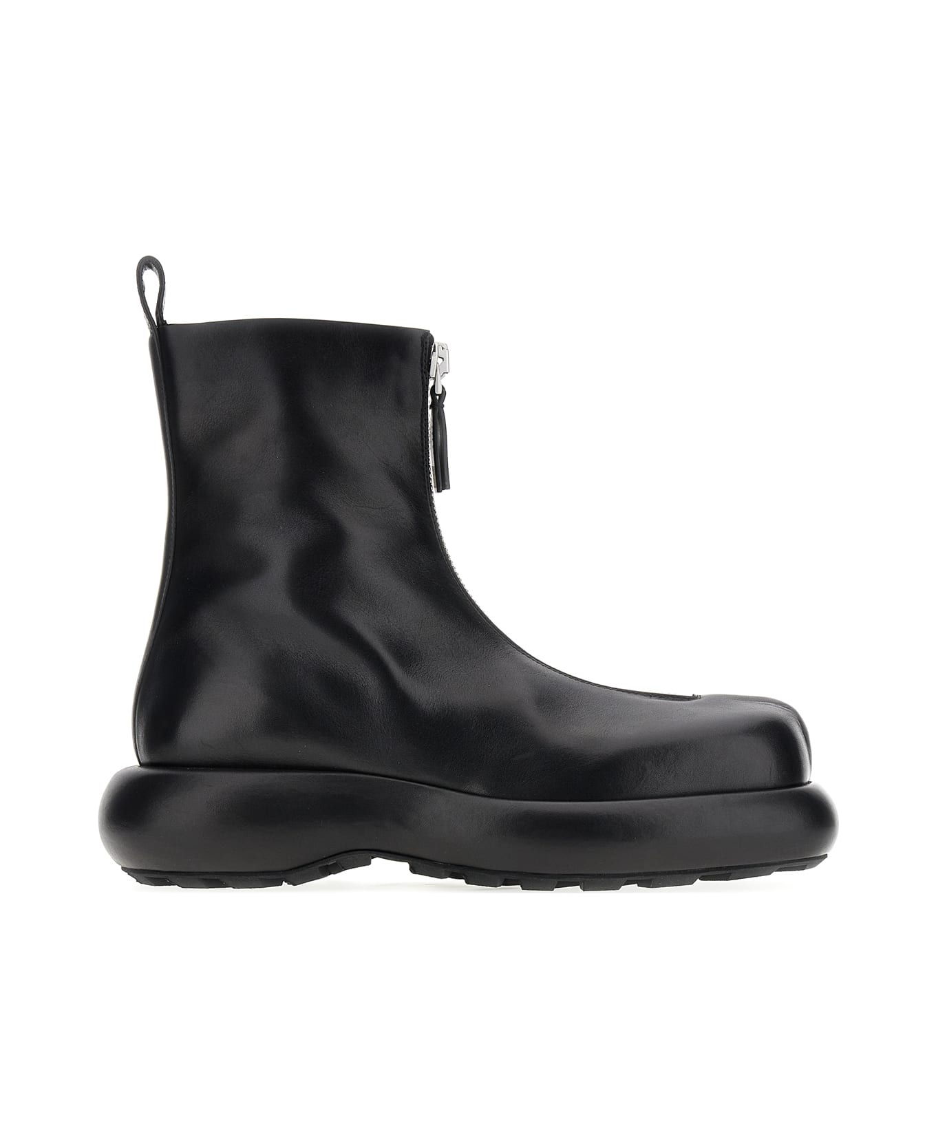 Ankle boots realized in smooth calf leather characterized by peculiar sole. -Squared toe -Zip closure at the front -Pull-tab at the back -Logoed label on the inside Composition: Exterior: 100% Calf Interior: 100% Leather Sole: Rubber