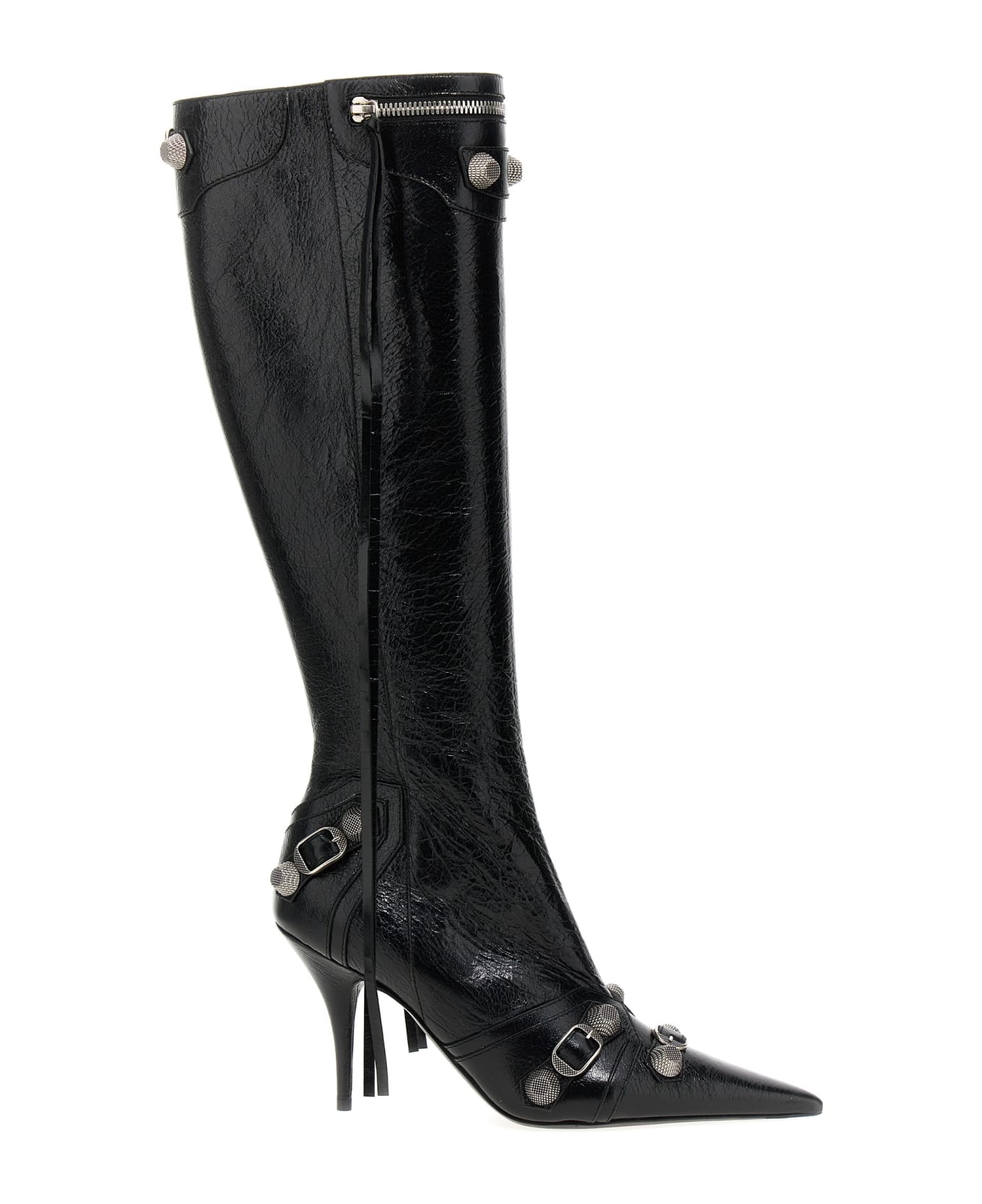 'Cagole' Arena lamb leather boots featuring studs and antiqued silver metal buckles, side zip closure and a pointed style. Composition: 100% lamb leather