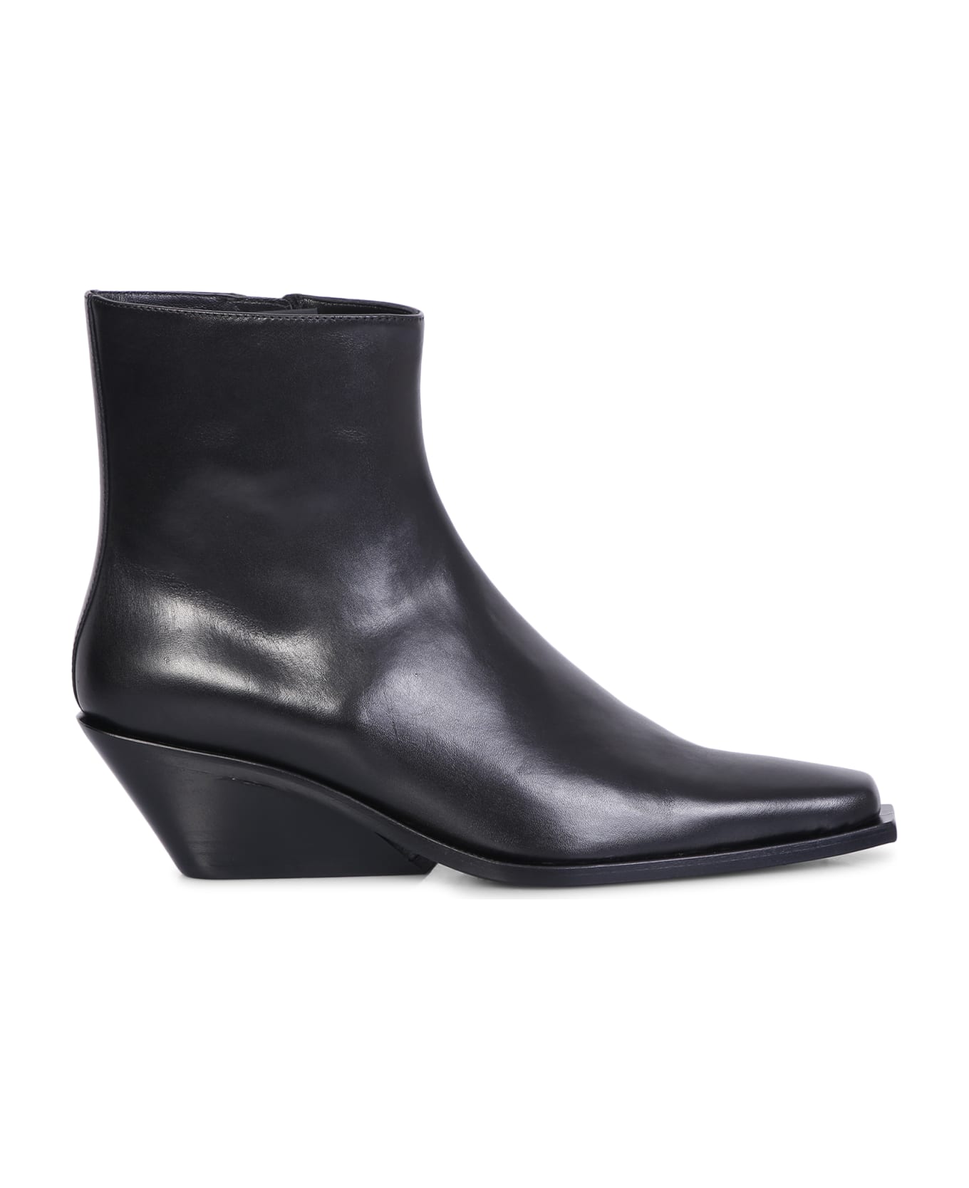 Tapared toe. Side zip fastening. Leather insole. Rubber sole. Ankle height. Color: black