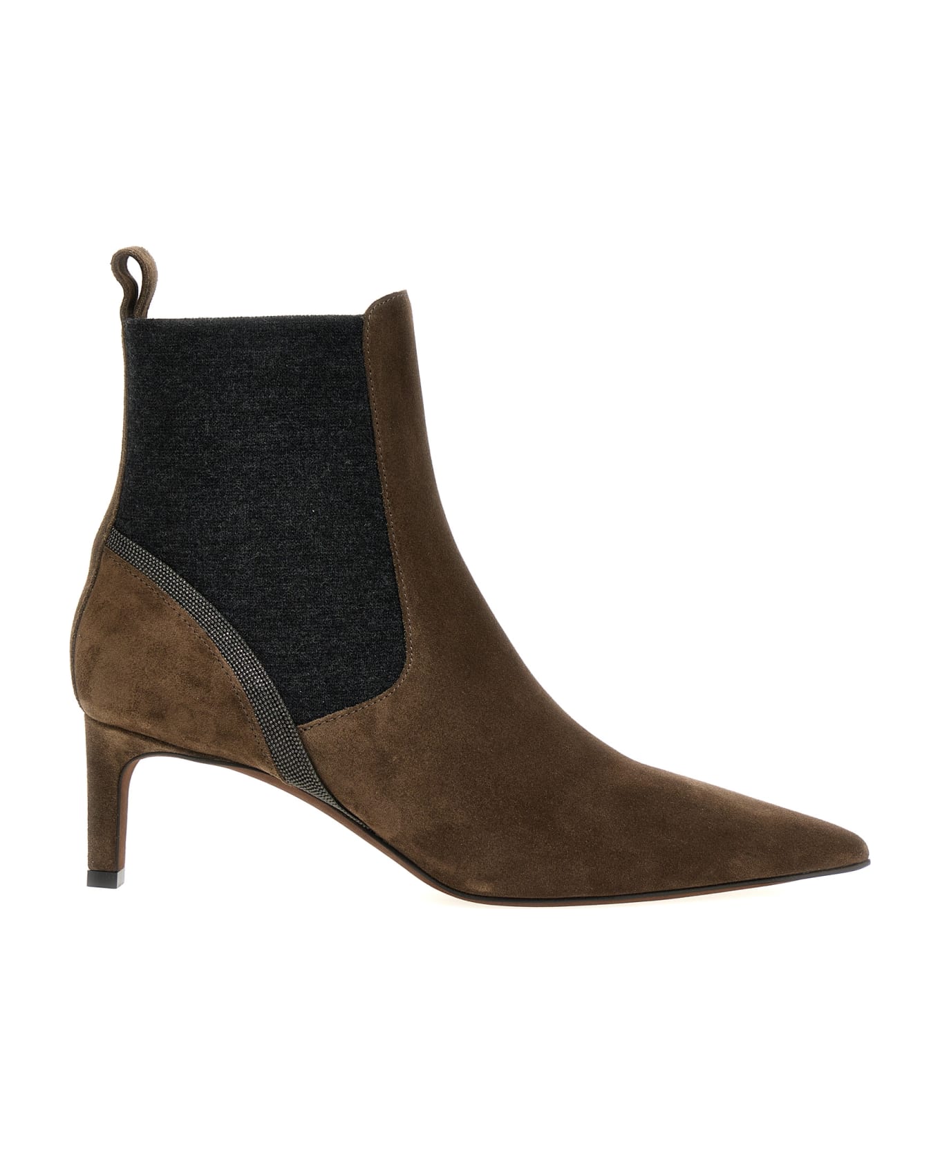 Suede ankle boots with 'Monile' detail, knit insert and low heel.