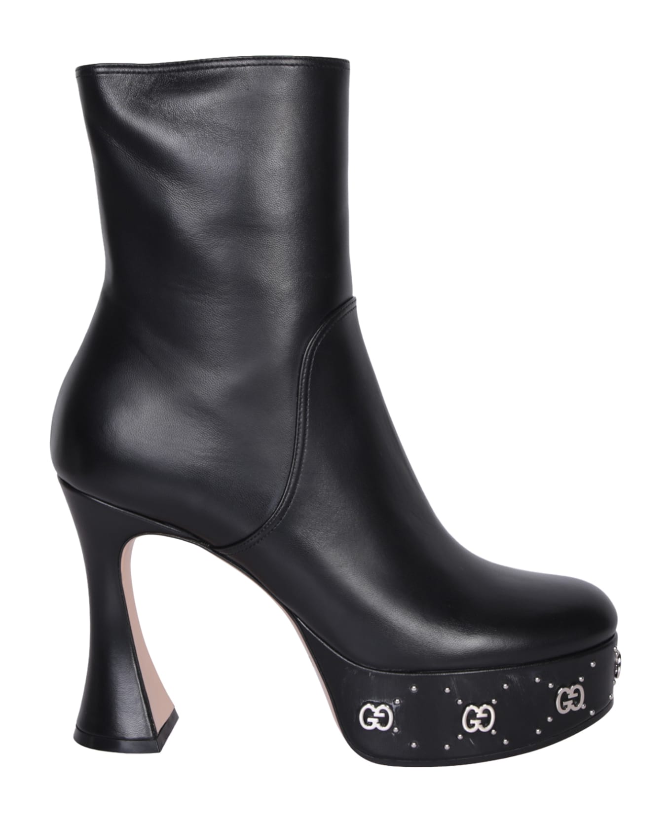 Round toe. Side zip fastening. High heel. Platform. GG studs patch. Color: black