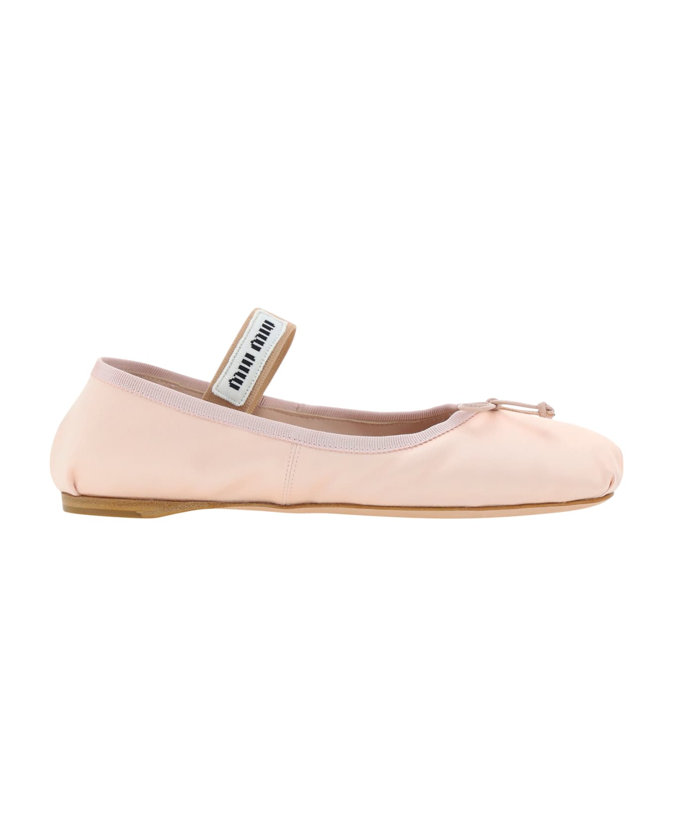Calfskin ballerinas by miu miu, flat sole, elasticized band appliqué at back of foot, iconic brand signature contrasting elasticized band, round toe. Composition: 100% % Calf Leather Bos Taurus, 100% % Calf Leather Bos Taurus