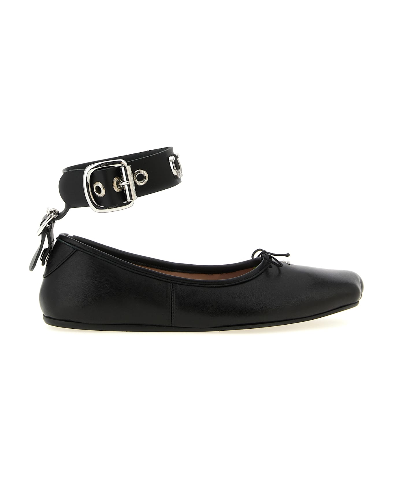 'Bardot' leather ballet flats with anatomical silhouette, metal 'Orb Bas Relief' logo and front bow, adjustable and removable ankle belt with decorative studs, leather sole. Composition: 100% lamb leather (Ovis aries)