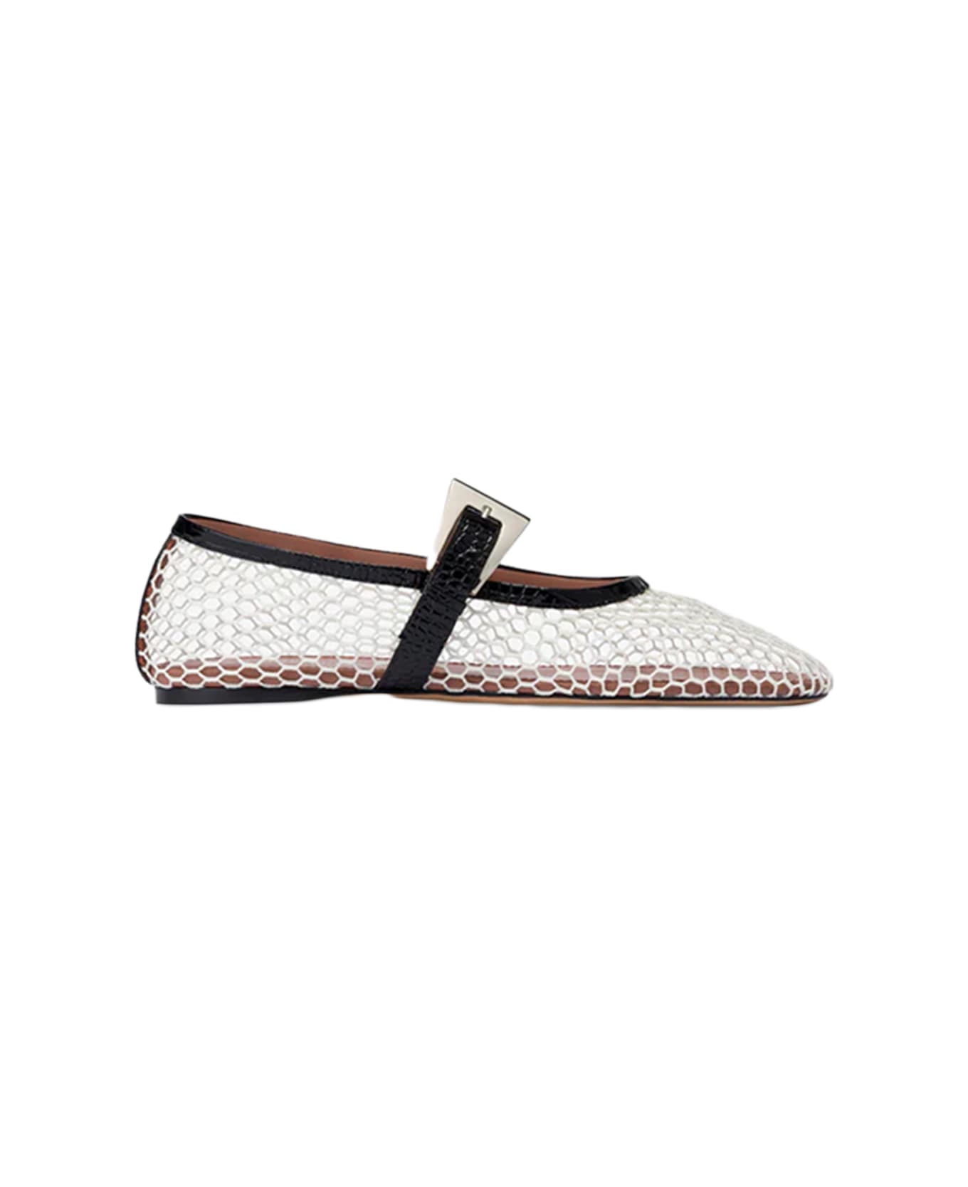Raffia loafer with mesh design Contrasting iconic buckle and tone-on-tone strap Regular fit Composition: 100% Leather