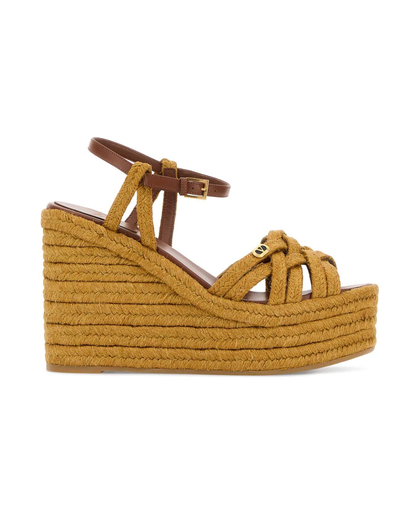 Mustard Raffia Vlogo Signature Wedges from Valentino Garavani