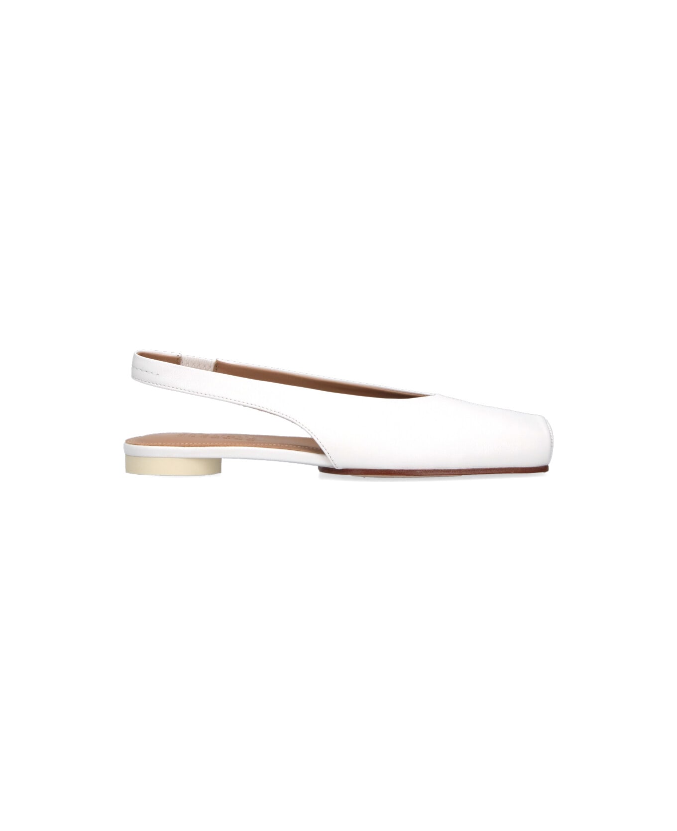 Maison Margiela MM6 slingback ballet flats in white goat leather with square toe, back leather strap, slip-on fit, rubber sole. Composition: 100% Sheep Leather