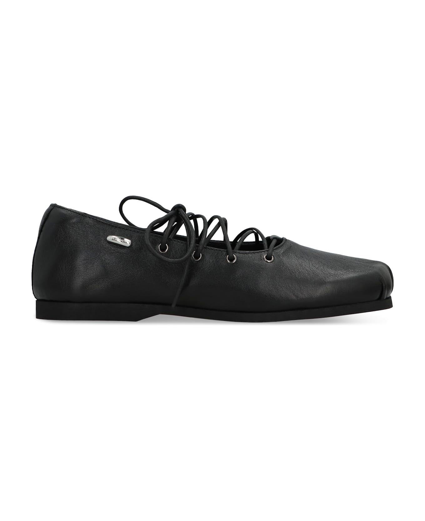Ballerina slip-in with laces combines elegance and comfort. made with high-quality materials, this shoe offers a perfect fit and superior support, making it ideal for both casual and formal occasions. rounded toe and metal logo detail on the side.