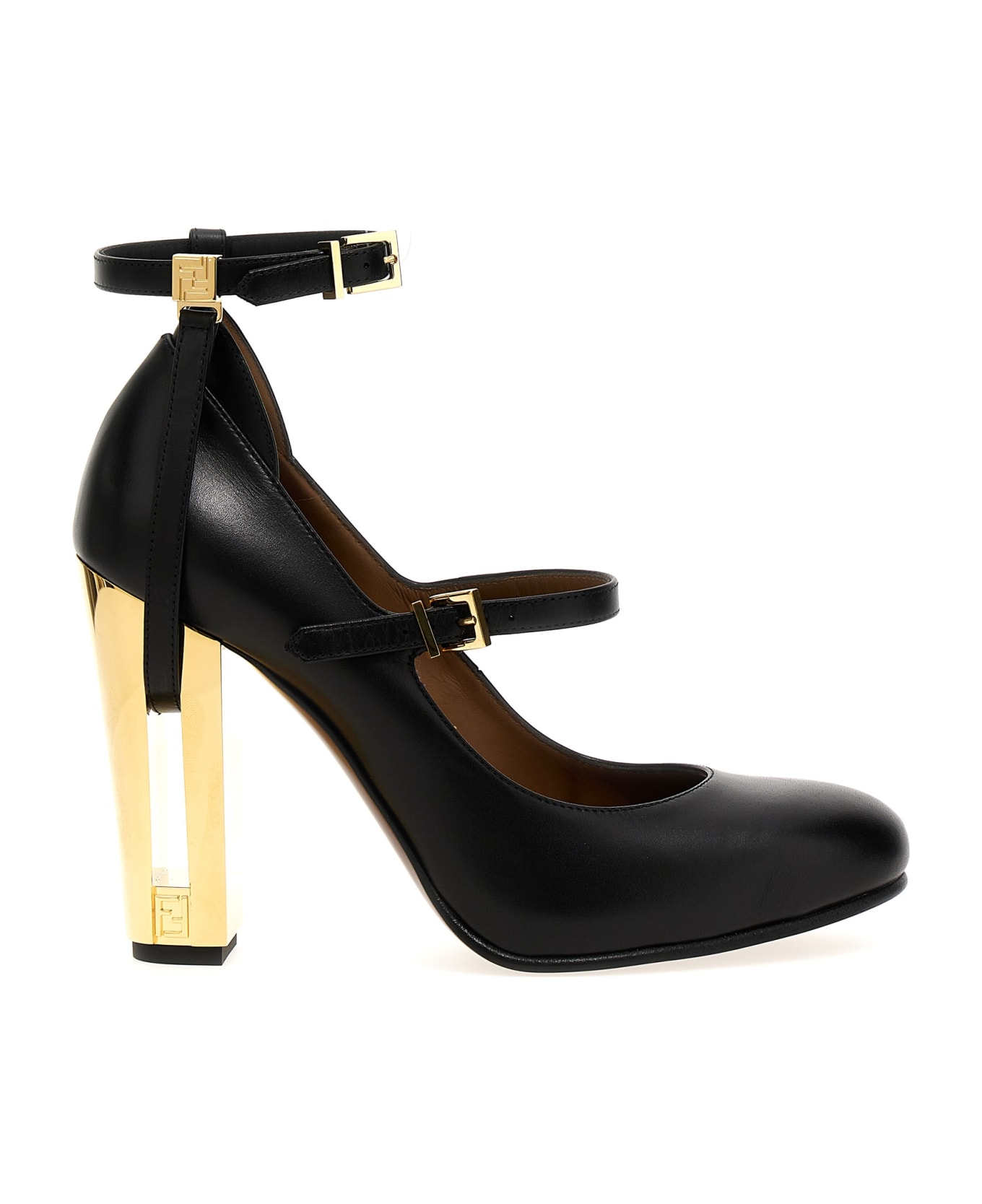 'Delfina' leather pumps with adjustable ankle straps, contrast metal heel with cut-out details. Composition: 100% calfskin leather