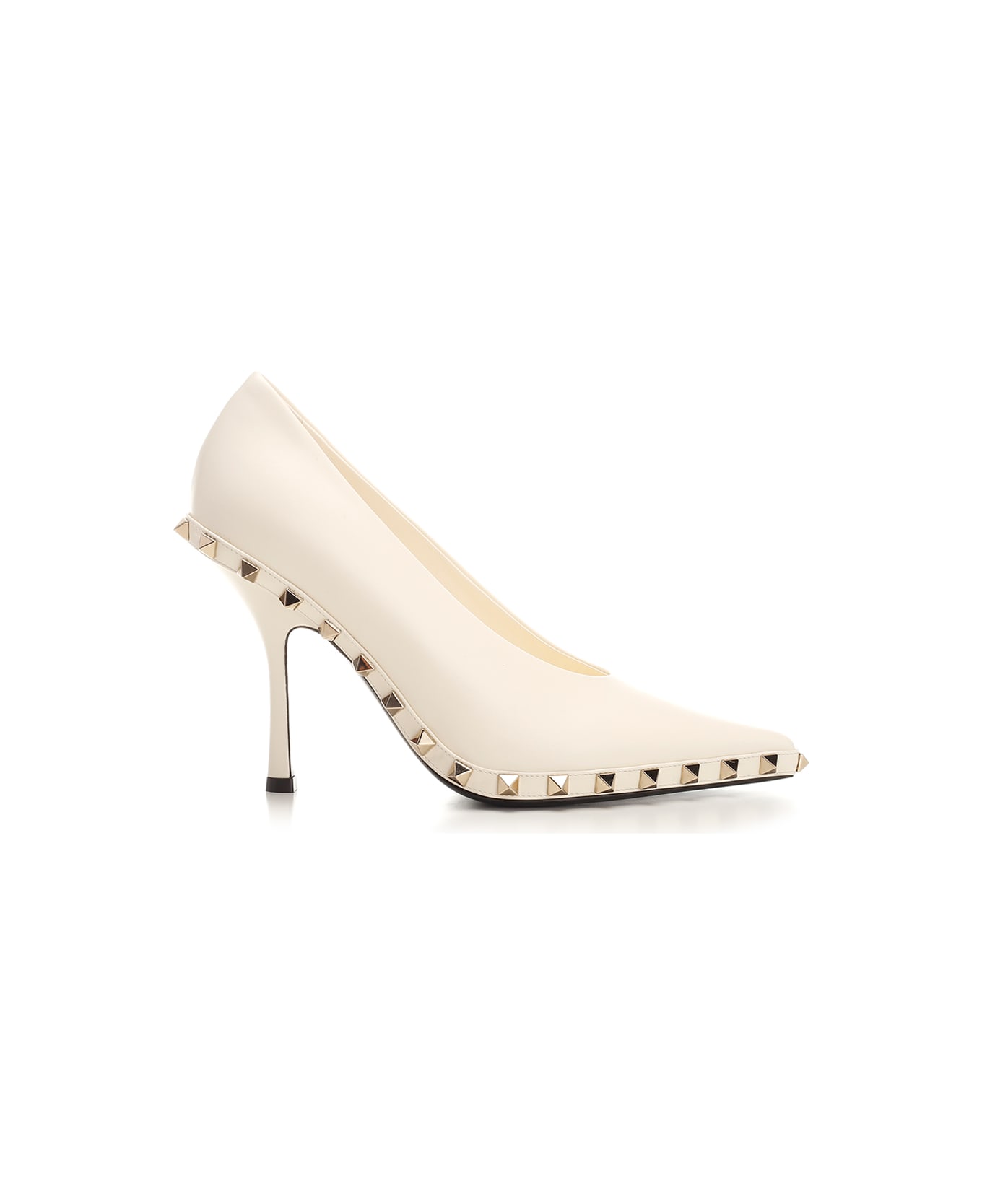 Ivory 'Rockstud' pump from Valentino Garavani in leather, thin heel, tapered toe, platinum studs on the profile. Composition: CALF LEATHER - BOS TAURUS